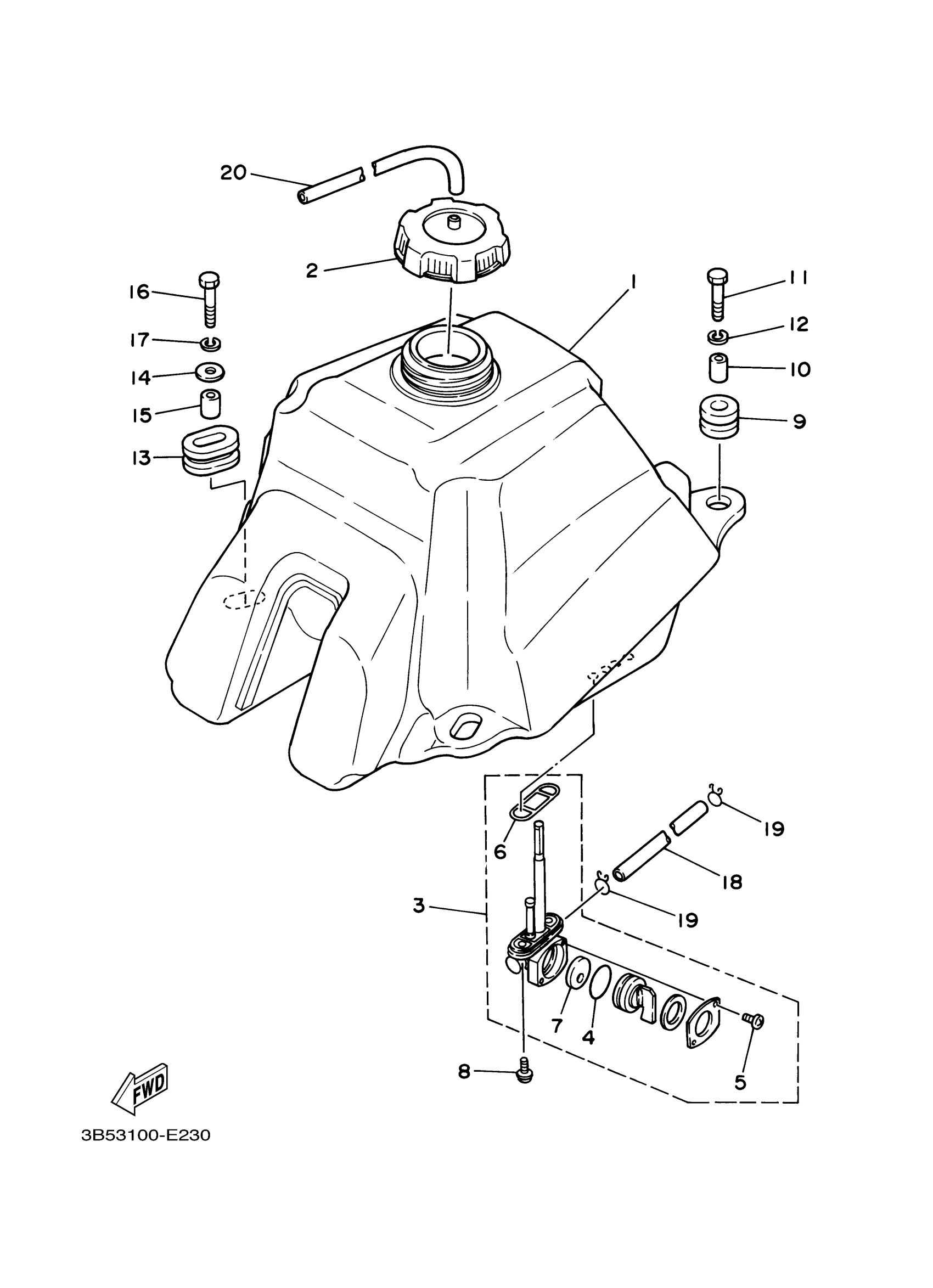 Yamaha YFZ350V (BANSHEE) 3B53 2006 FUEL TANK Diagram