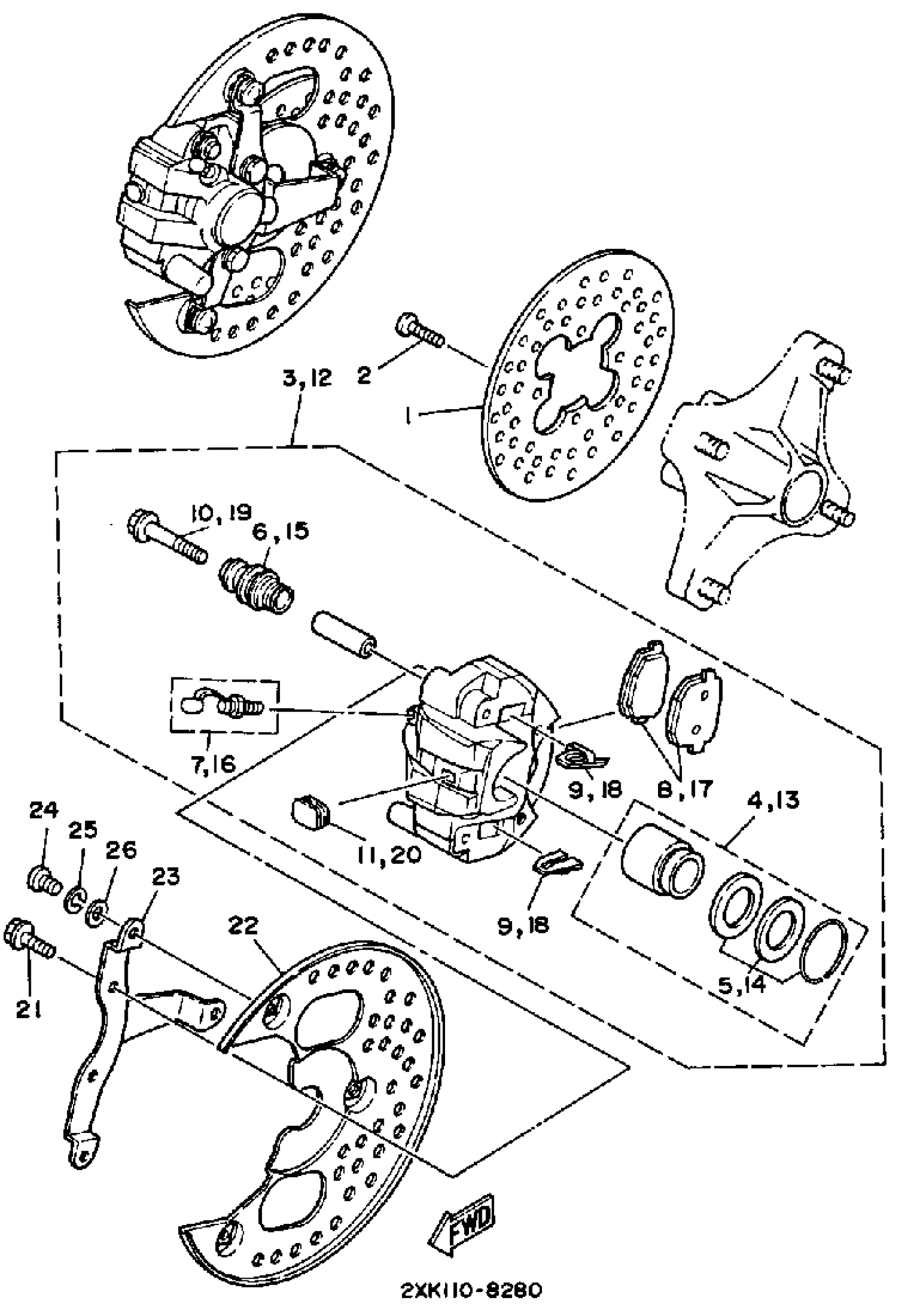 Yamaha YFZ350W (BANSHEE) 1989 FRONT BRAKE CALIPER Diagram