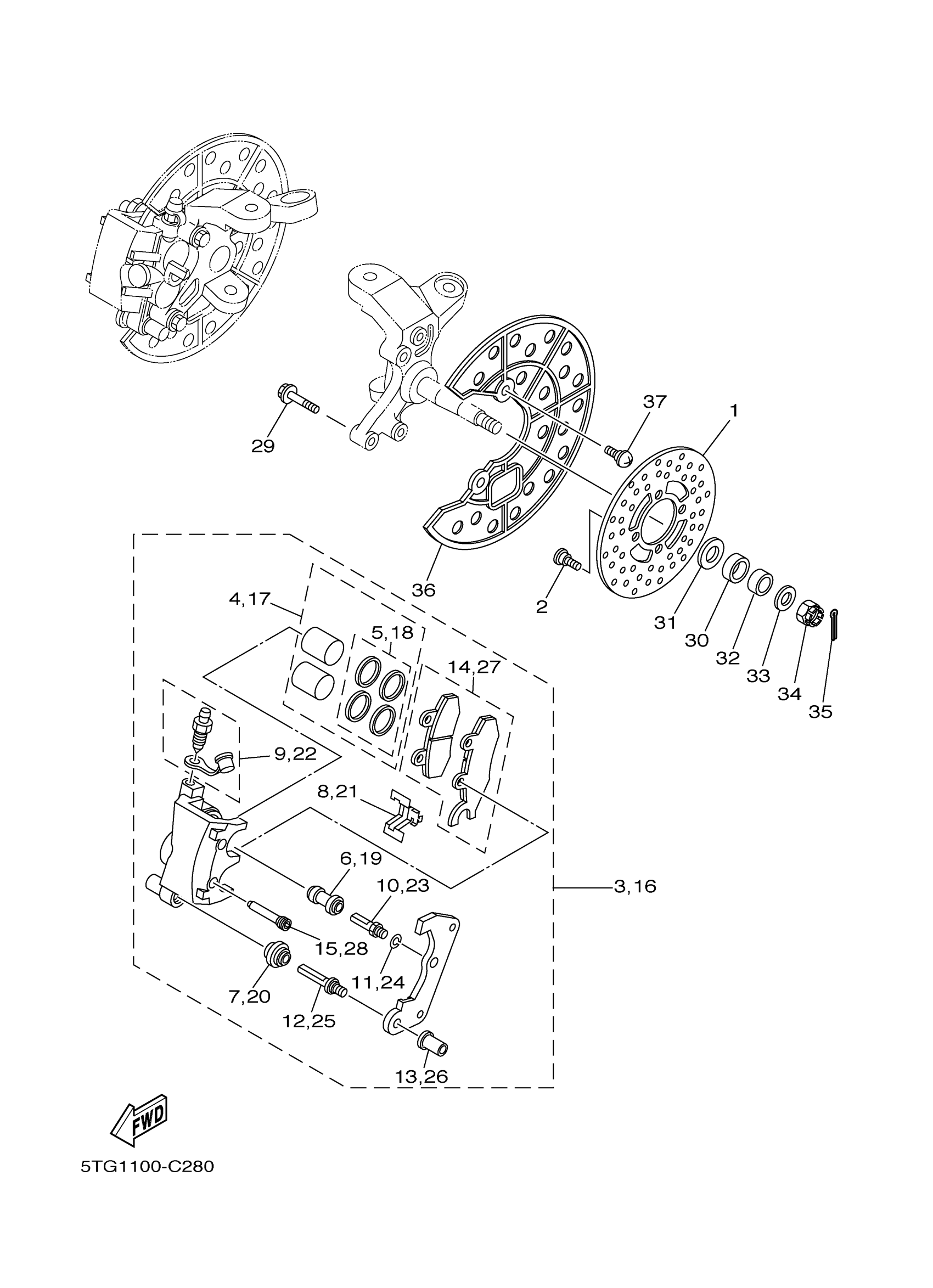 Yamaha YFZ450S (YFZ450) 5TG1 2004 FRONT BRAKE CALIPER Diagram