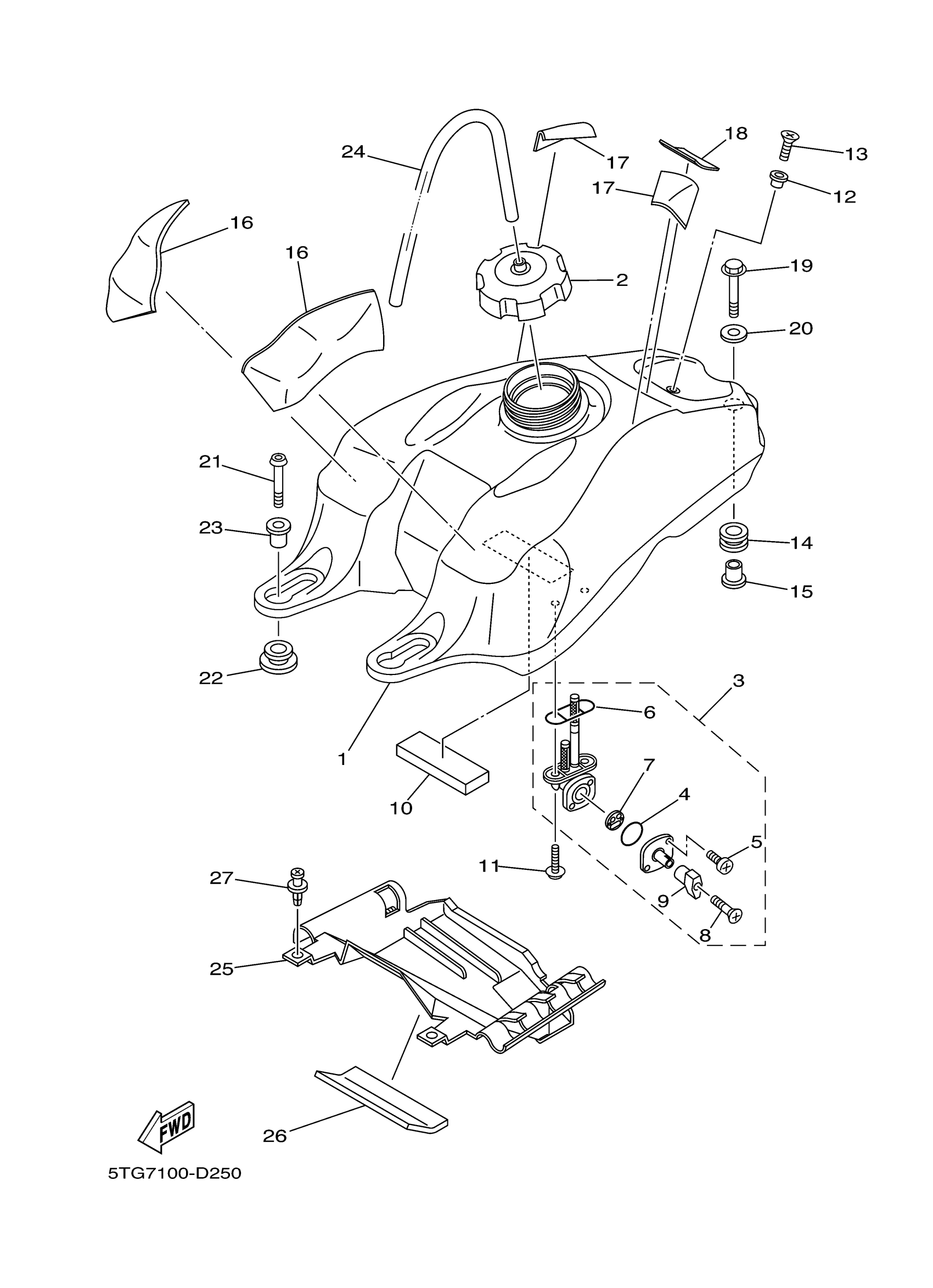 Yamaha YFZ450SP2X (YFZ450 SPECIAL EDITION II) 5D3J 2008 FUEL TANK Diagram