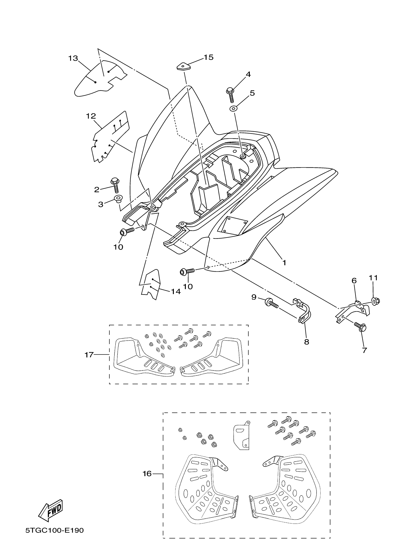 Yamaha YFZ450SP2X (YFZ450 SPECIAL EDITION II) 5D3J 2008 REAR FENDER FOOTWELLS Diagram