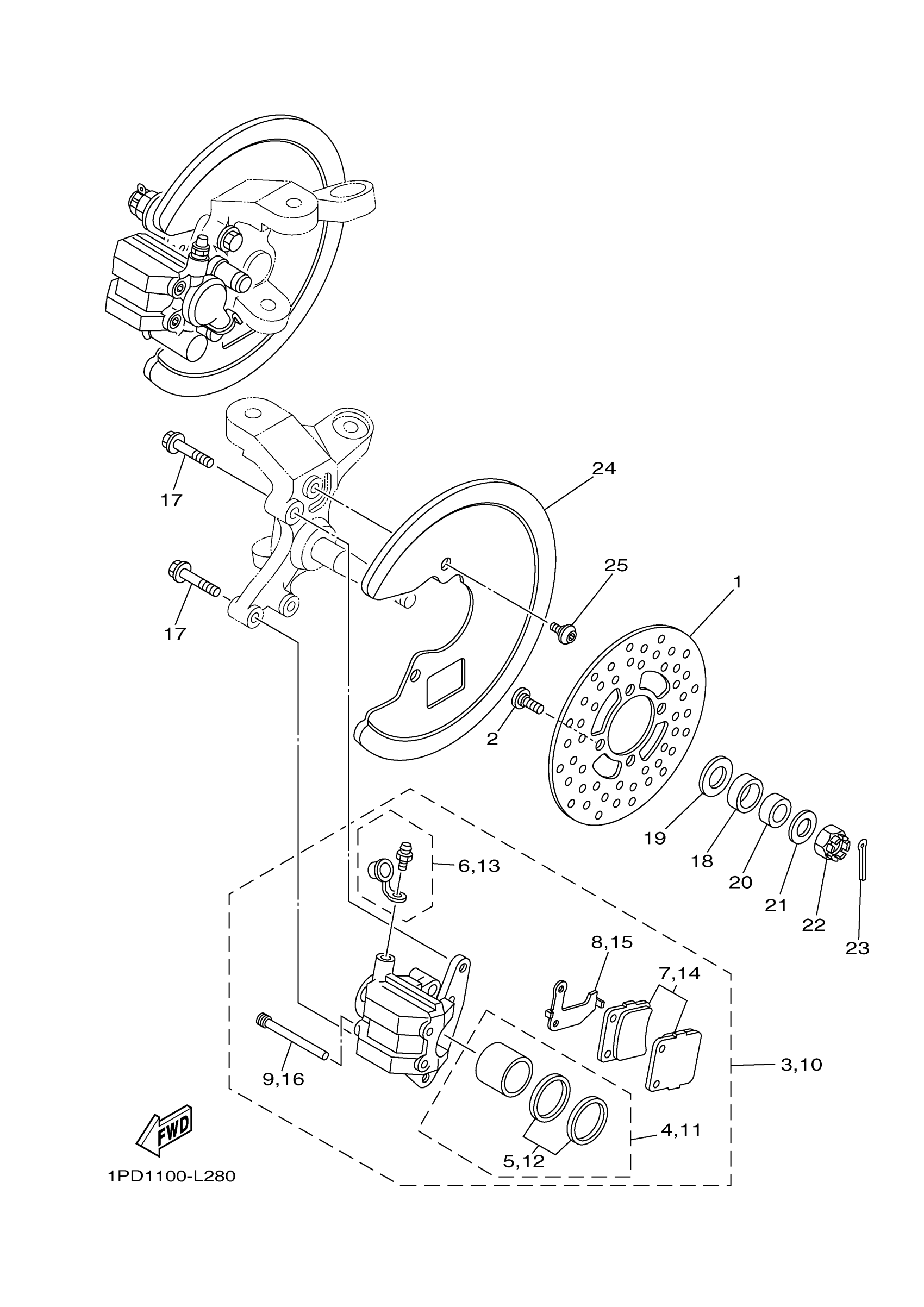 Yamaha YFZ45DB (YFZ450) 1PD4 2013 FRONT BRAKE CALIPER Diagram