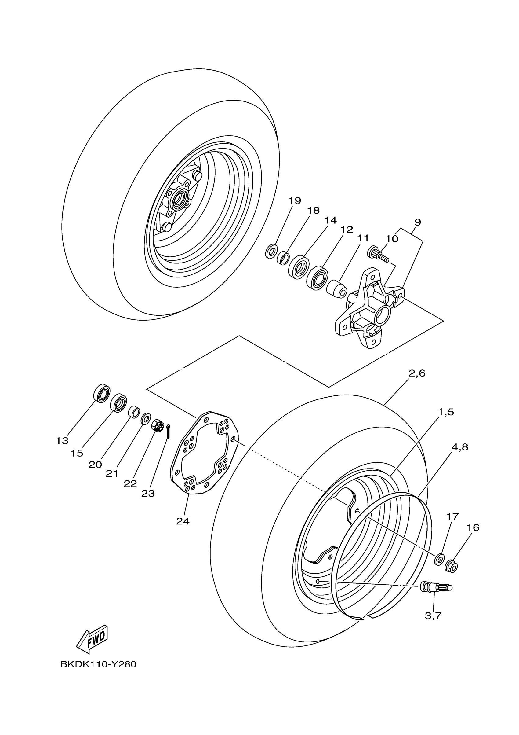 Yamaha YFZ45YSSRD (YFZ450R SE) BKDT 2024 FRONT WHEEL Diagram
