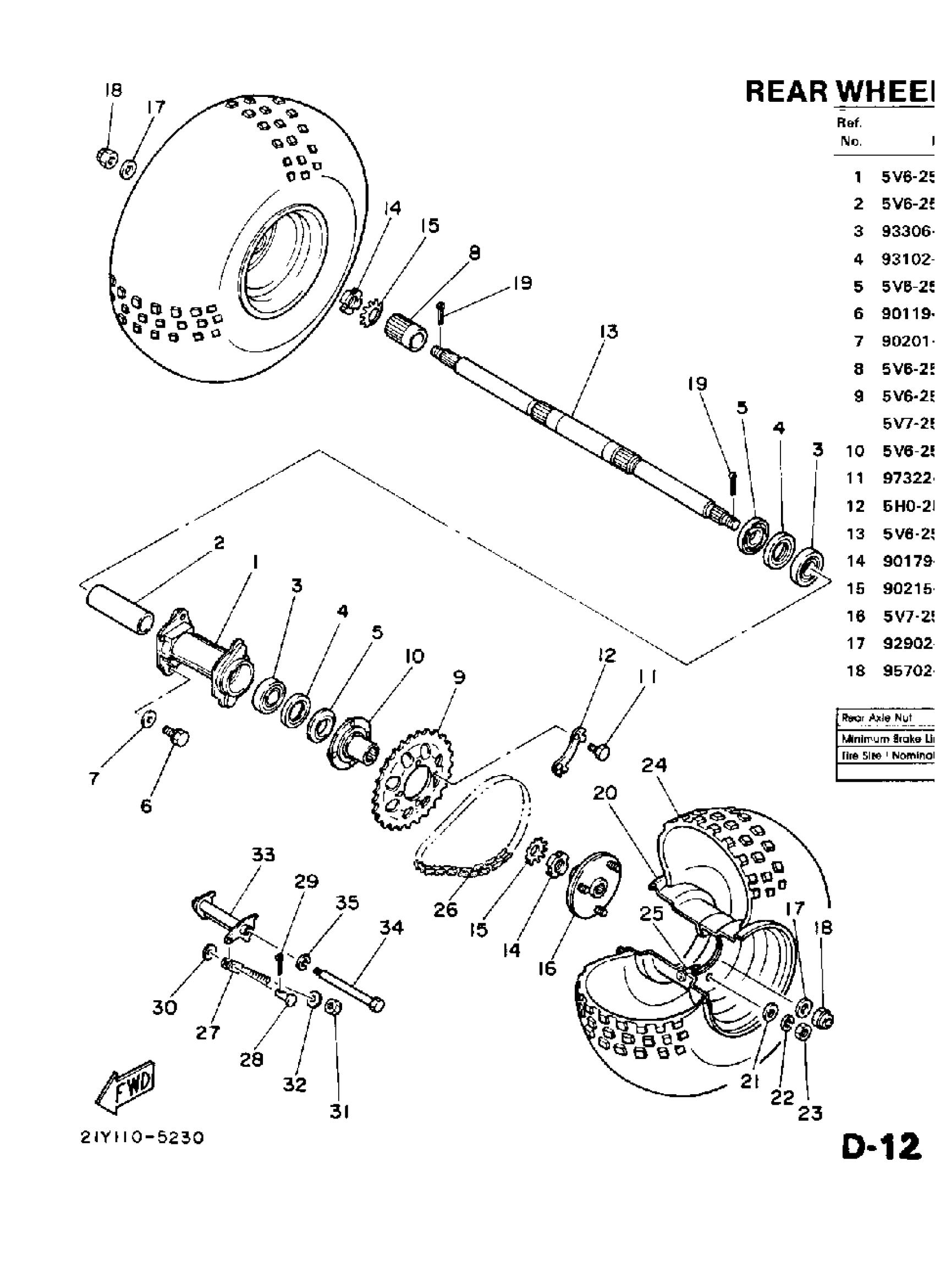 Yamaha YT125N 1985 REAR WHEEL Diagram