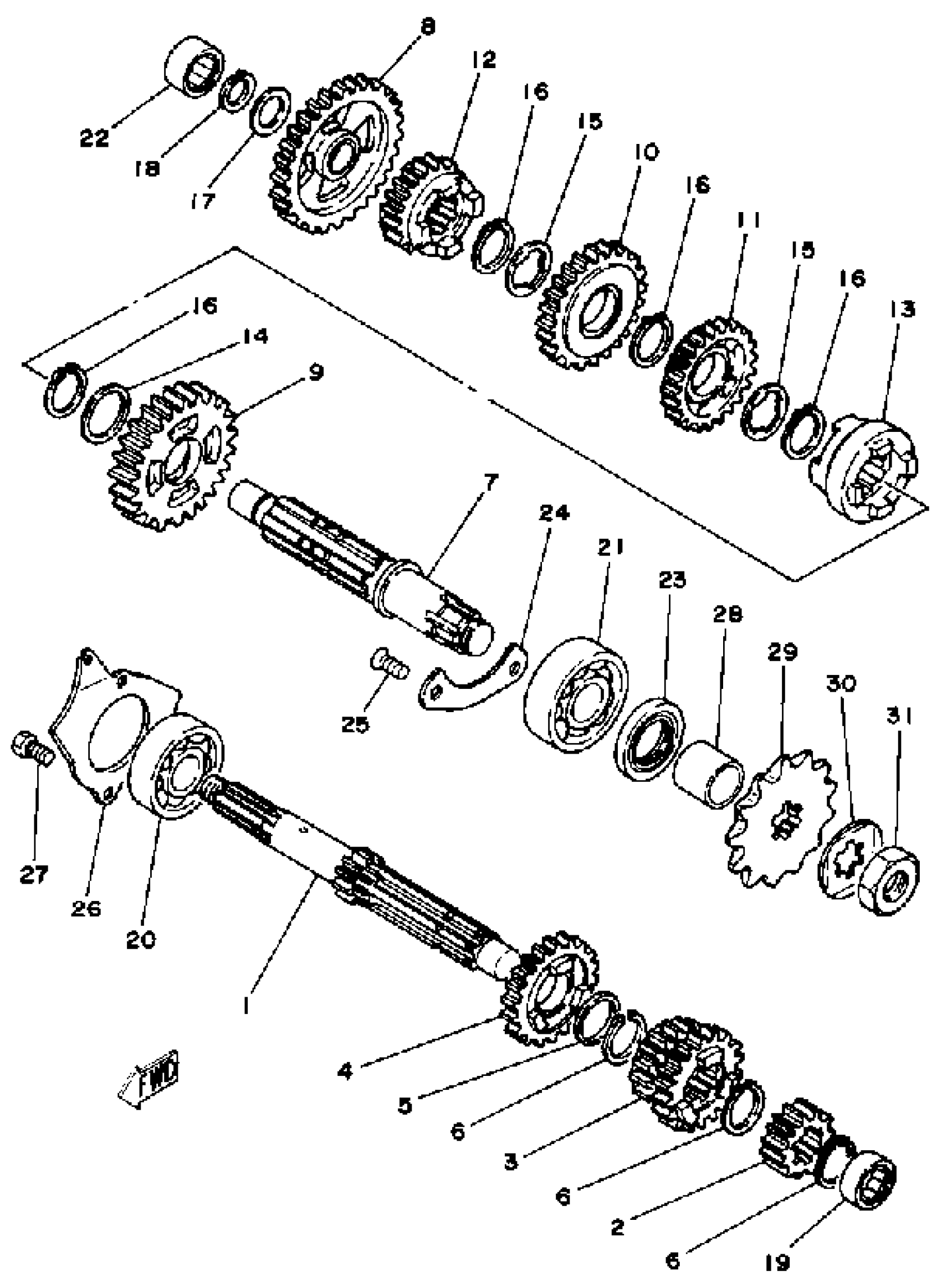 Yamaha YT175J 1982 TRANSMISSION Diagram