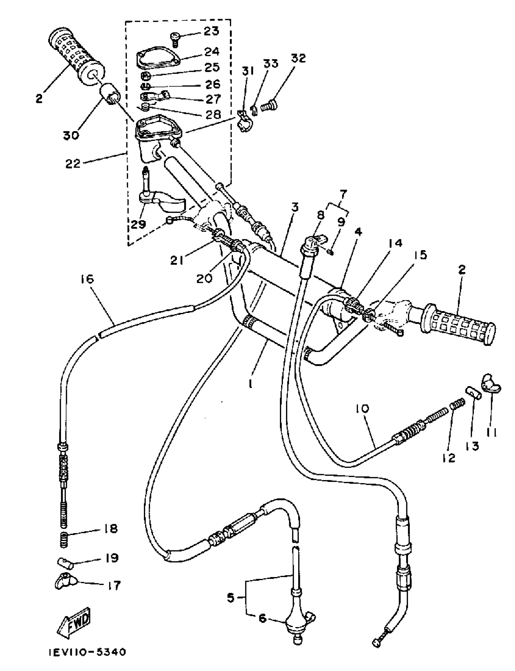 Yamaha YTM225DRN 1985 HANDLEBAR - CABLE Diagram