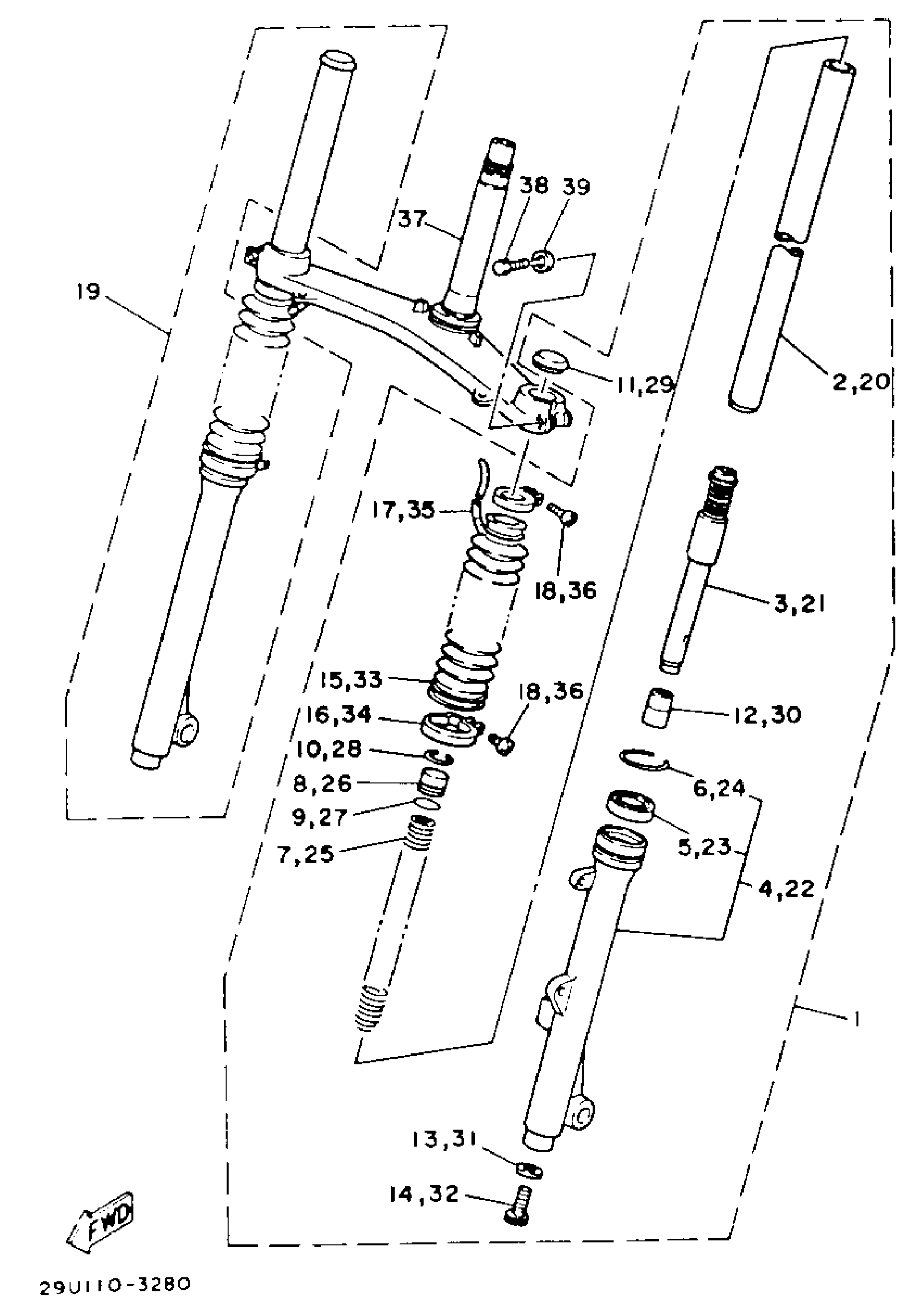 Yamaha YTM225DXK 1983 FRONT FORK Diagram