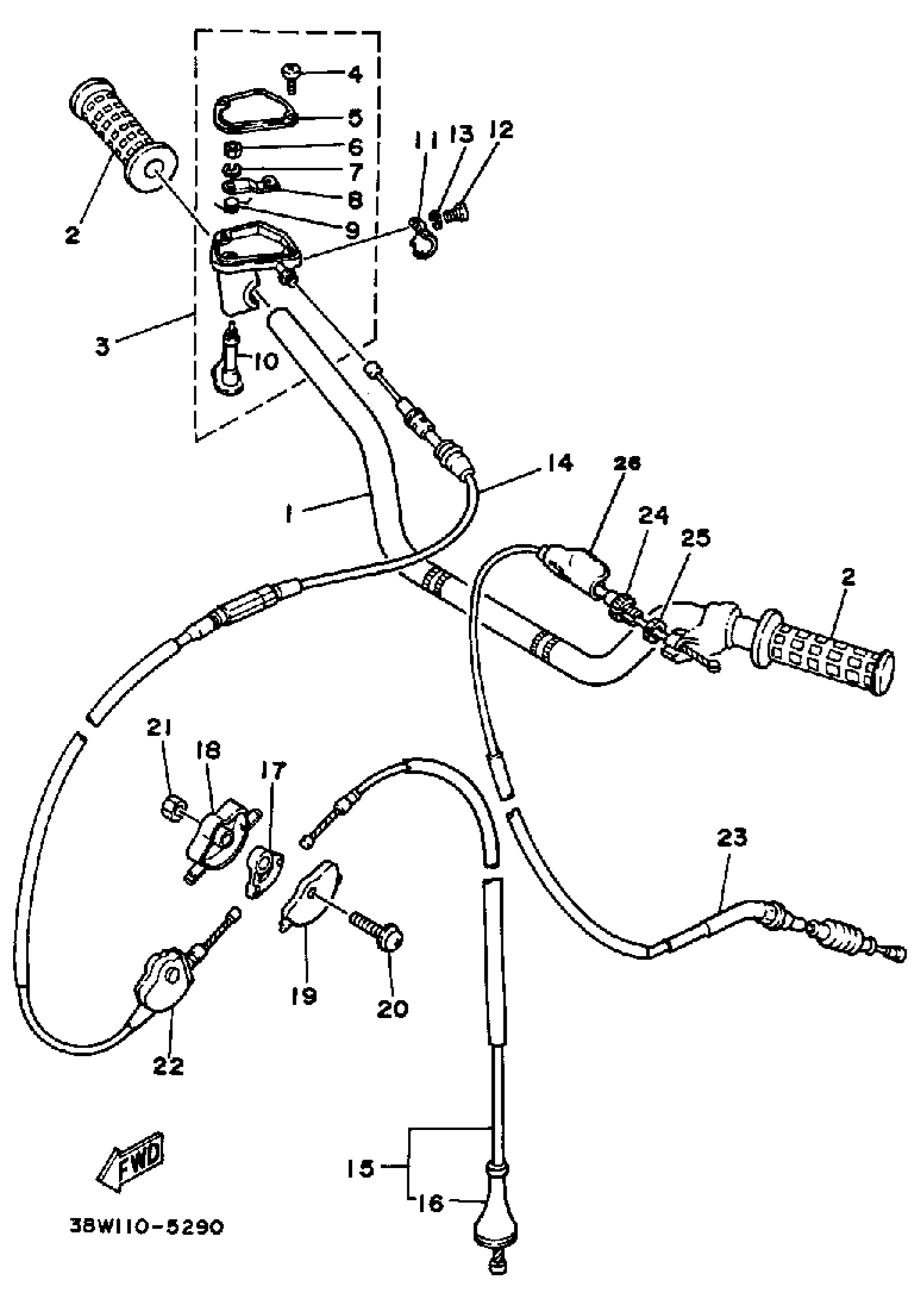 Yamaha YTZ250N 1985 HANDLEBAR-CABLE Diagram