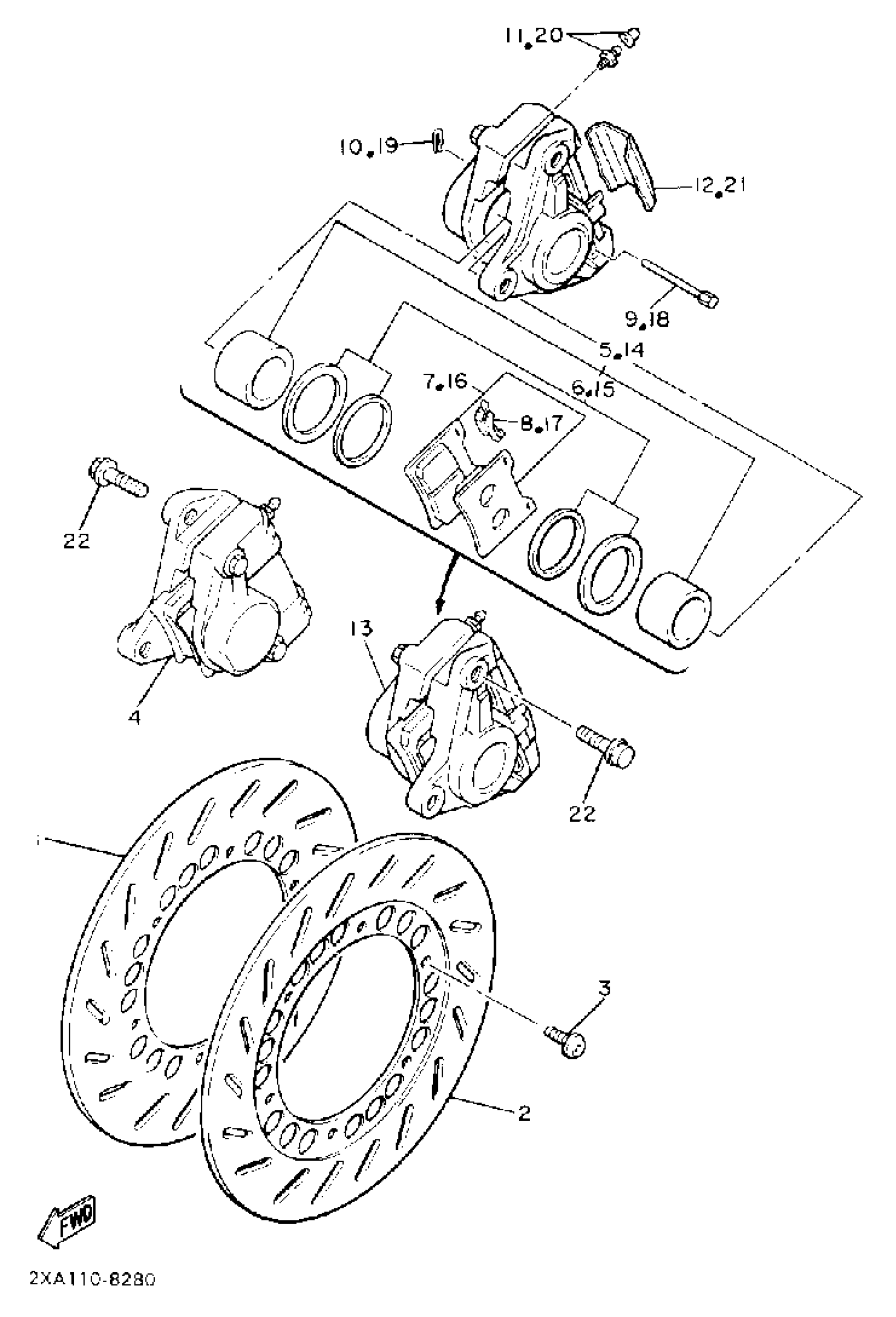 Yamaha YX600UC (RADIAN CA) 1988 FRONT BRAKE CALIPER Diagram