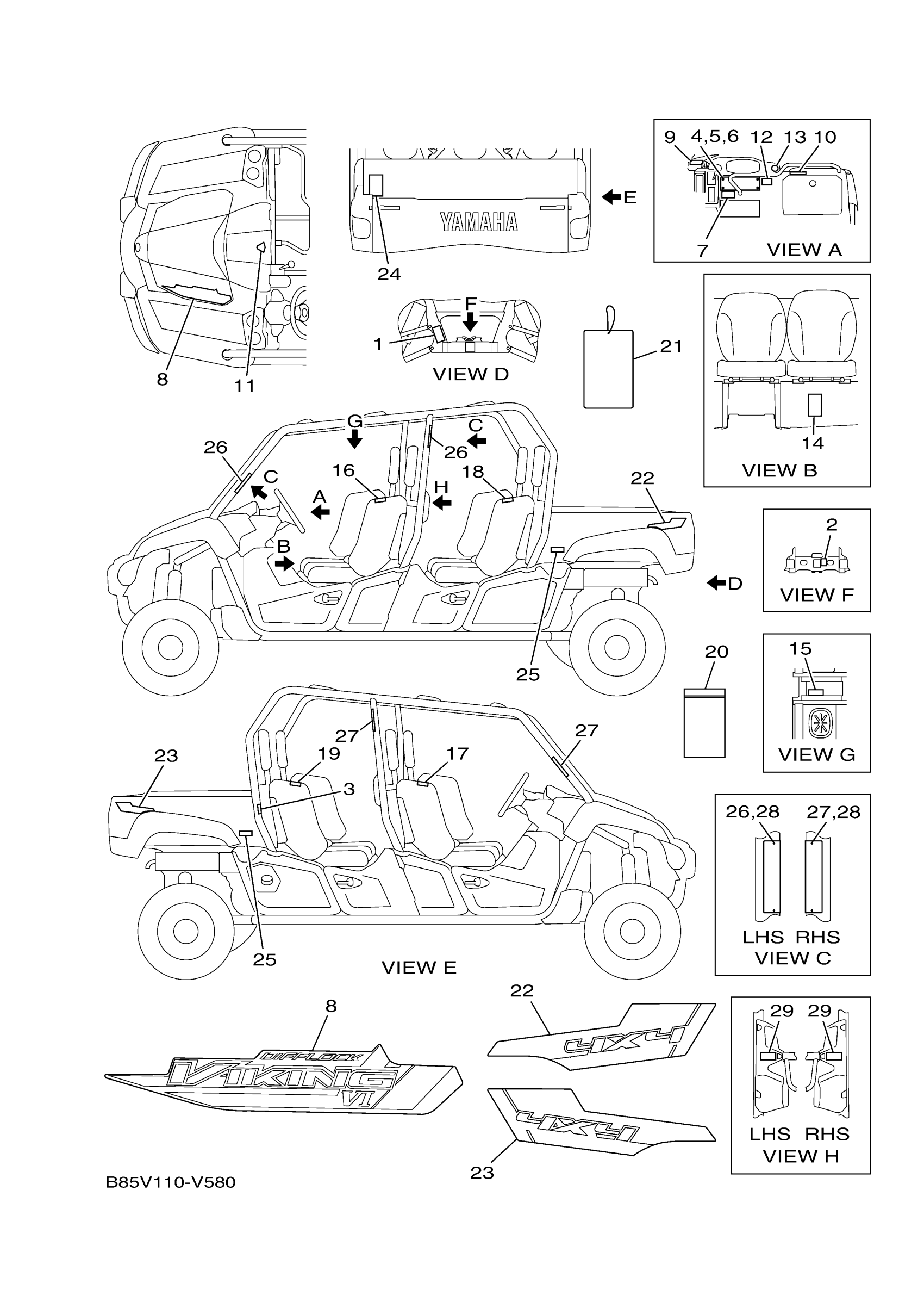 Yamaha YXC70VPHLH (VIKING VI EPS HUNTER) B85V 2020 EMBLEM LABEL 1 Diagram