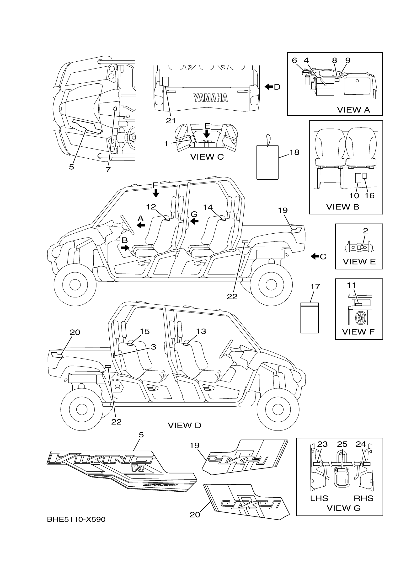 Yamaha YXC70VPXPG (VIKING VI EPS) BHE9 2023 EMBLEM & LABEL 1 Diagram