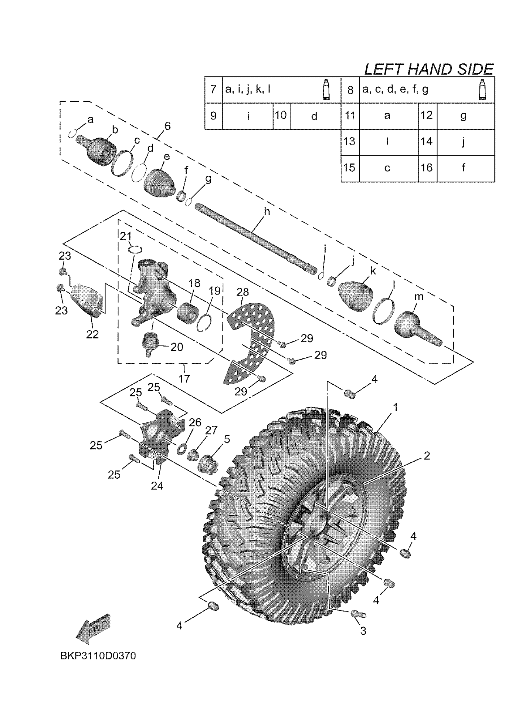 Yamaha YXE10WRASD (WOLVERINE RMAX2 1000 R SPEC) BKP3 2025 FRONT WHEEL Diagram