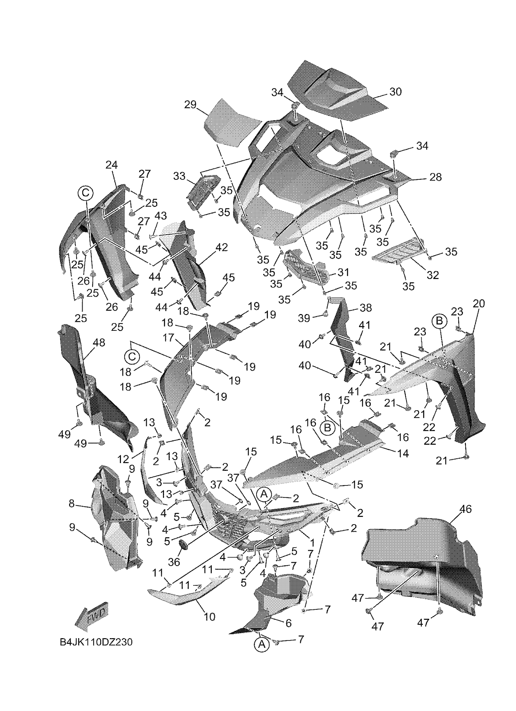Yamaha YXE10WRZSB (WOLVERINE RMAX2 1000 XT R) BKP1 2025 FRONT FENDER 2 Diagram