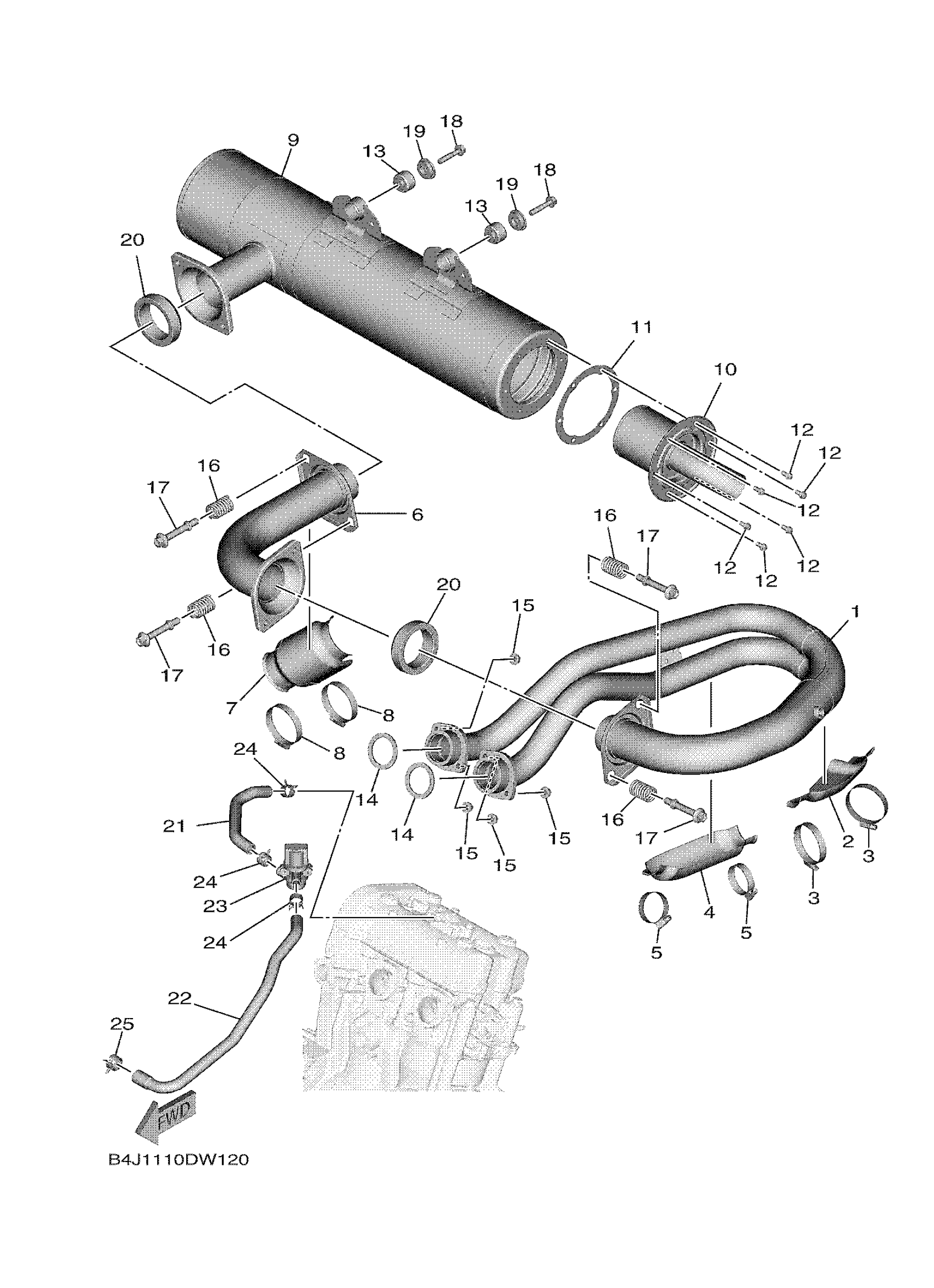 Yamaha YXE10WTARW (WOLVERINE 1000 X2 EPS) BFN3 2024 EXHAUST Diagram
