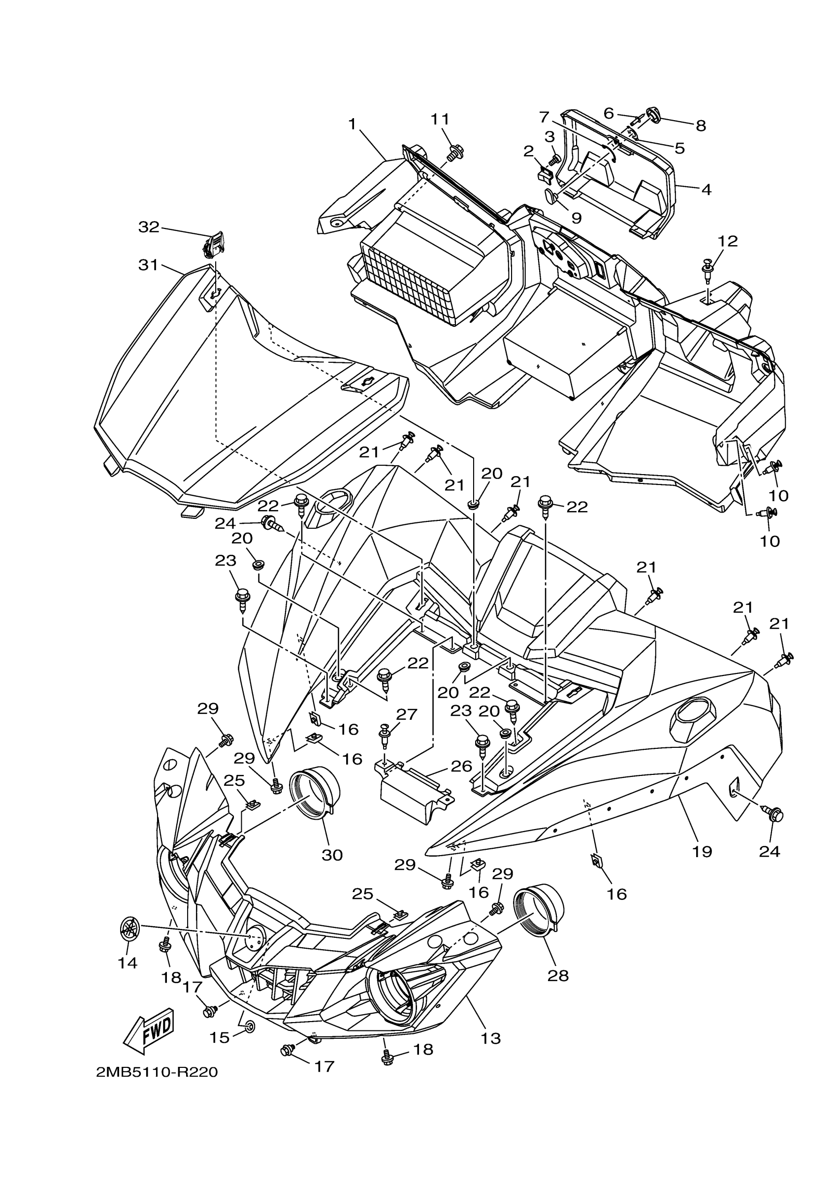 Yamaha YXE70WPHHH (WOLVERINE R-SPEC EPS HUNTER) 2MBG 2017 FRONT FENDER Diagram