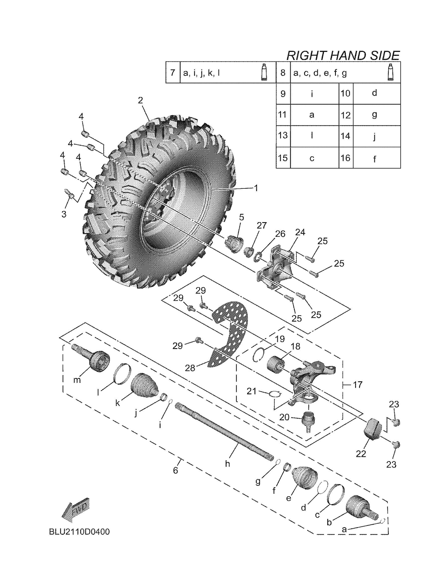 Yamaha YXF10WRATG (WOLVERINE RMAX4 1000 COMPACT R SPEC) BLU8 2026 FRONT WHEEL 2 Diagram