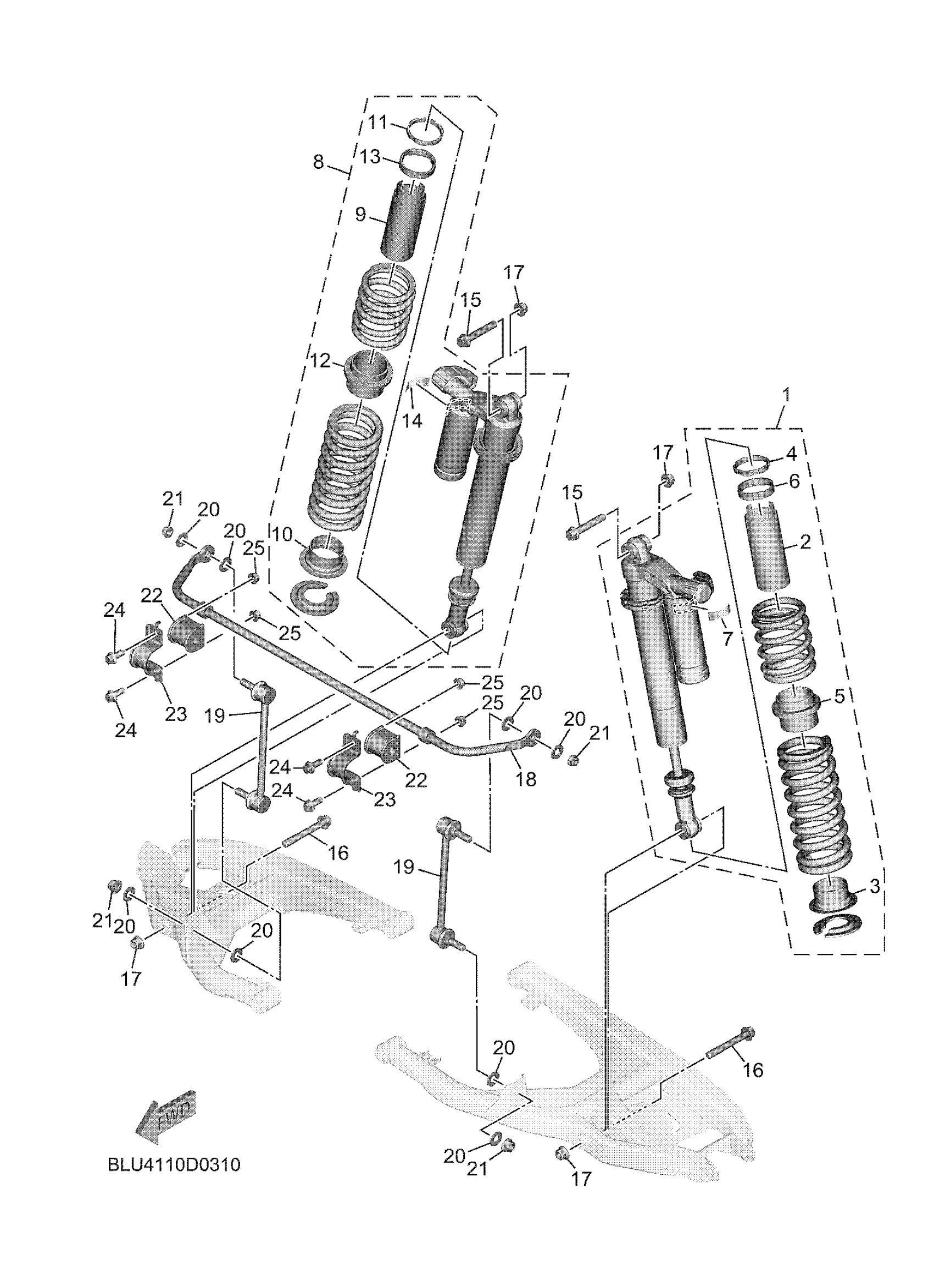 Yamaha YXF10WRLSL (WOLVERINE RMAX4 1000 COMPACT LE) BLU4 2025 REAR SUSPENSION Diagram