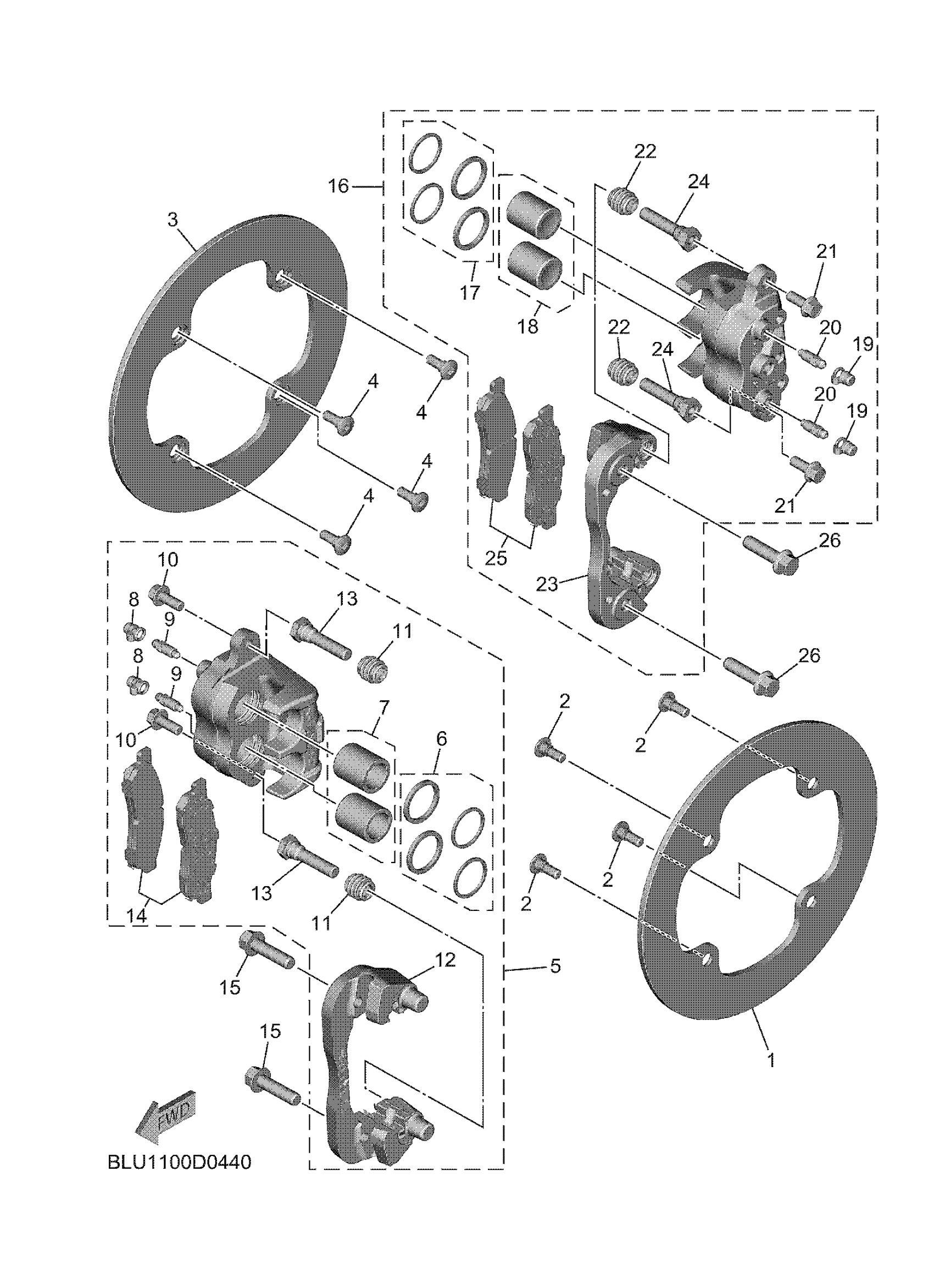 Yamaha YXF10WRLTL (WOLVERINE RMAX4 1000 COMPACT LE) BLUA 2026 REAR BRAKE CALIPER Diagram