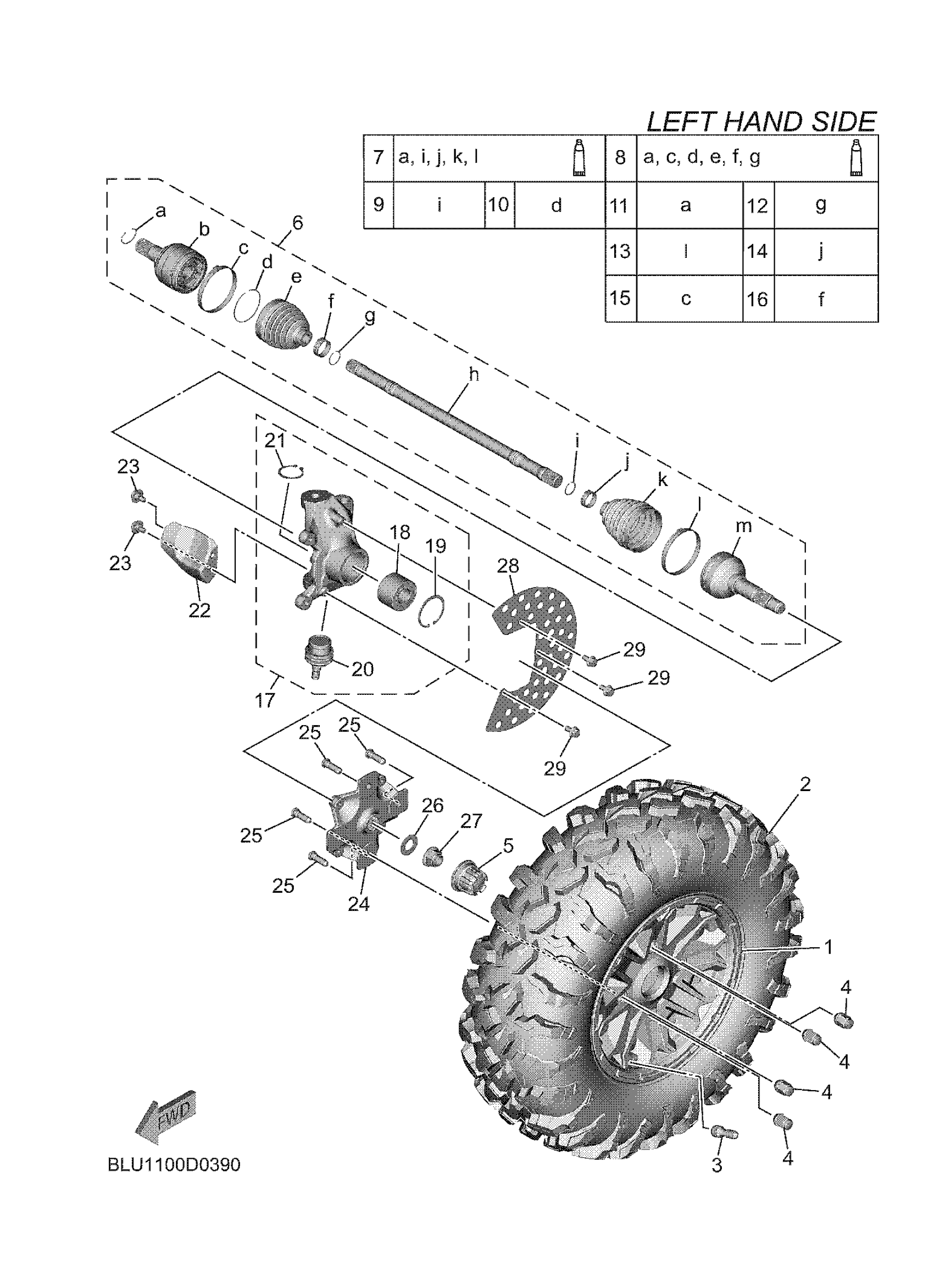 Yamaha YXF10WRZTM (WOLVERINE RMAX4 1000 COMPACT XT R) BLU7 2026 FRONT WHEEL Diagram