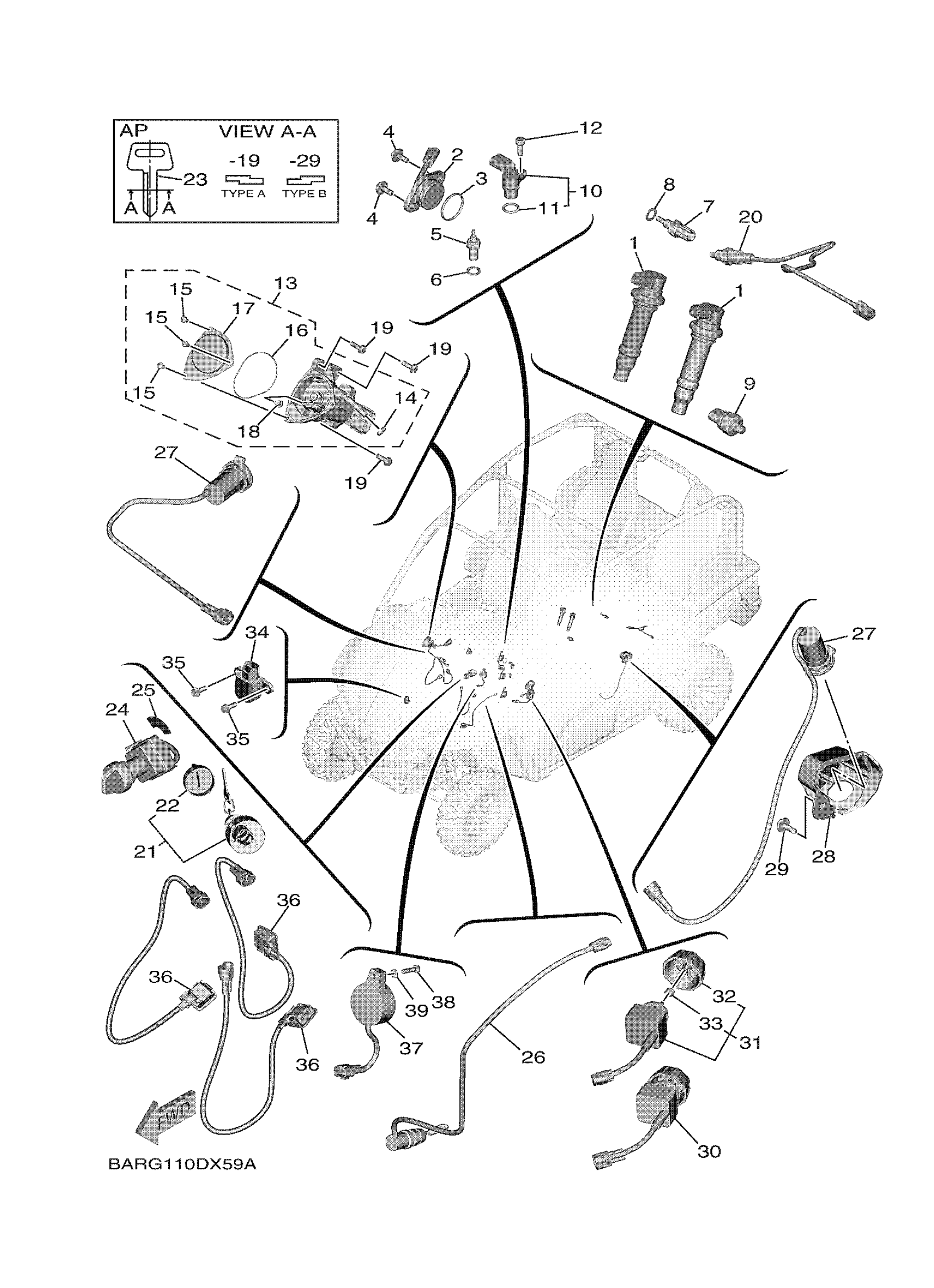 Yamaha YXF85WTZSB (WOLVERINE X4 850 XT R) BARV 2025 ELECTRICAL 1 Diagram