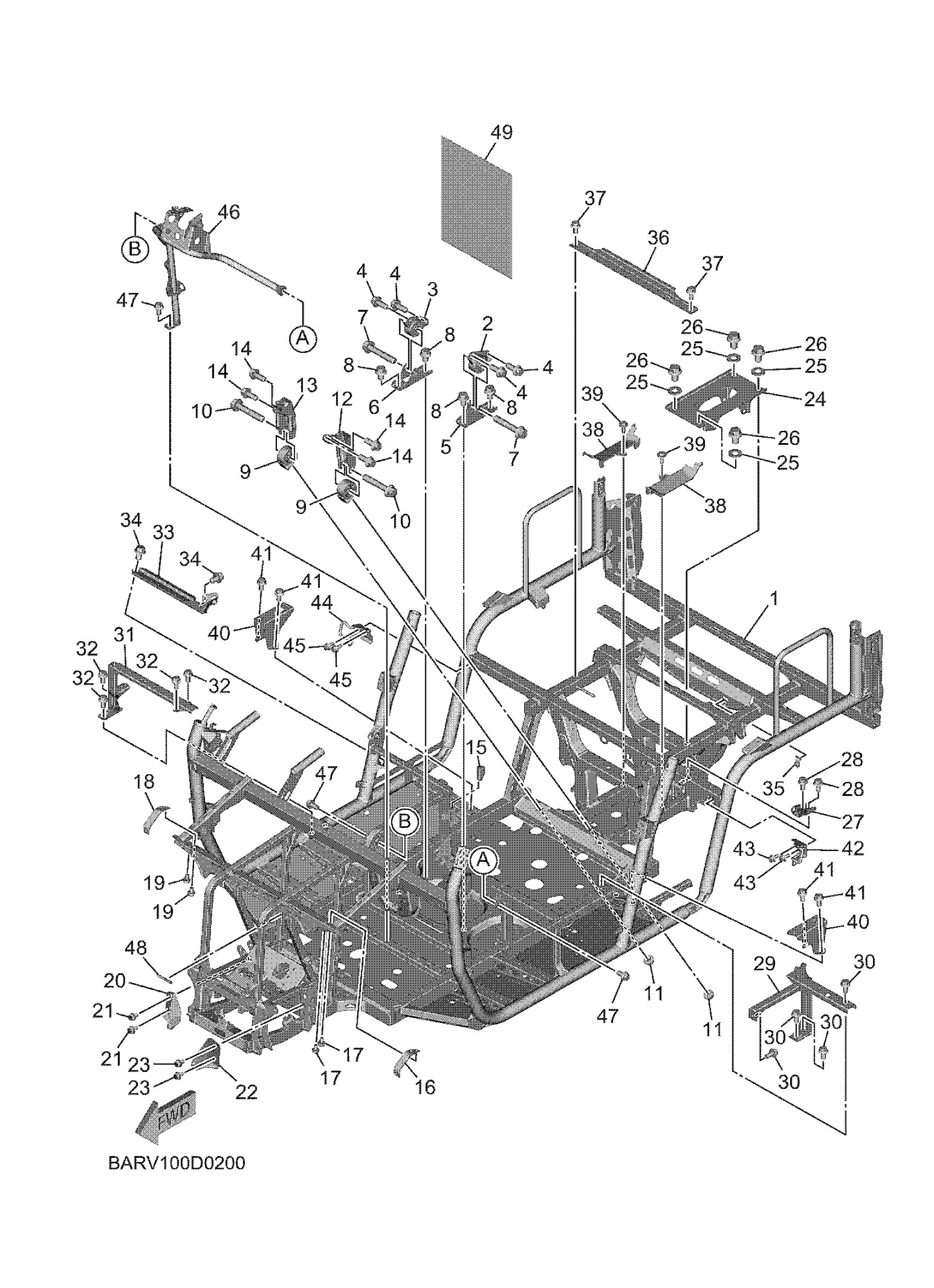Yamaha YXF85WTZSB (WOLVERINE X4 850 XT R) BARV 2025 FRAME Diagram