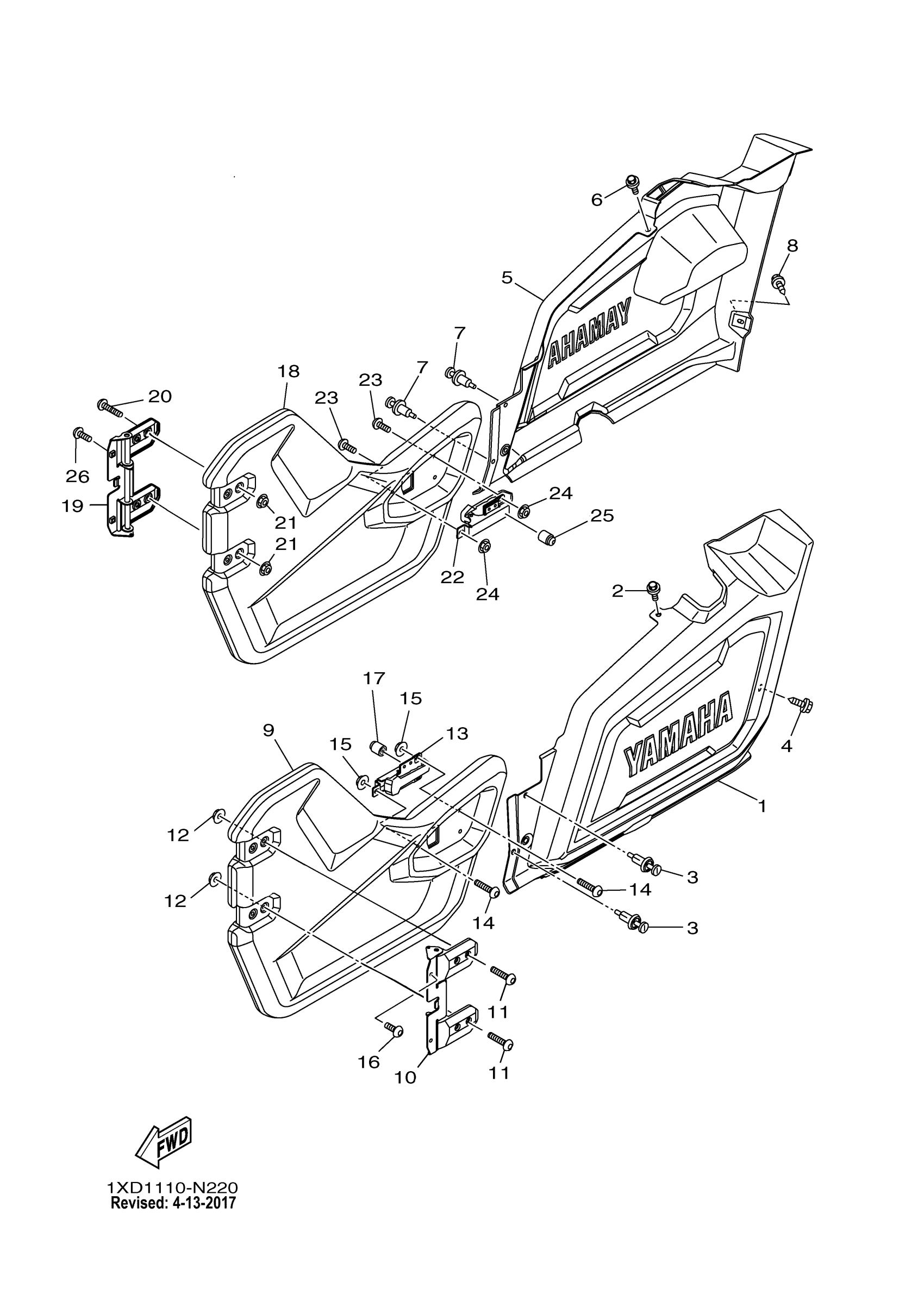 Yamaha YXM700PHEH (VIKING 700 EPS HUNTER) 1XP9 2014 SIDE COVER Diagram