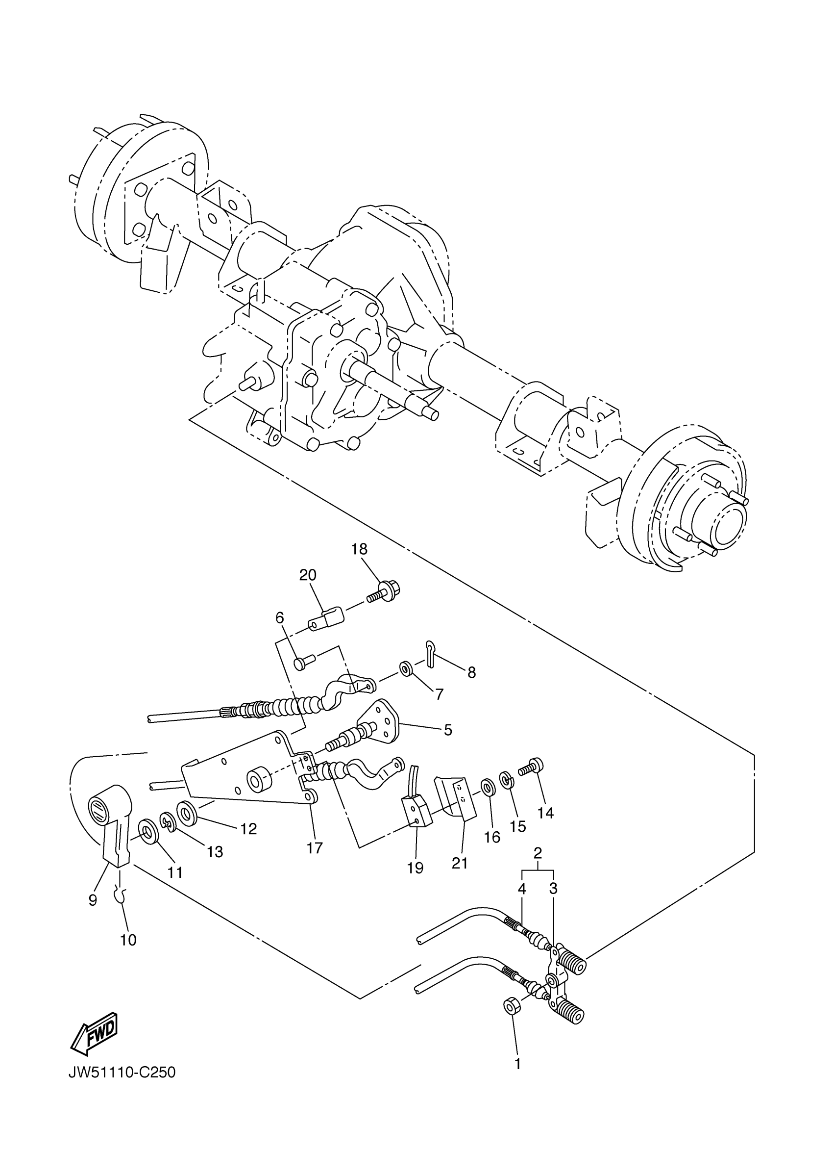 Yamaha YXP1000AS (PRO HAULER 1000) JW51 2004 SHIFTER CABLES Diagram