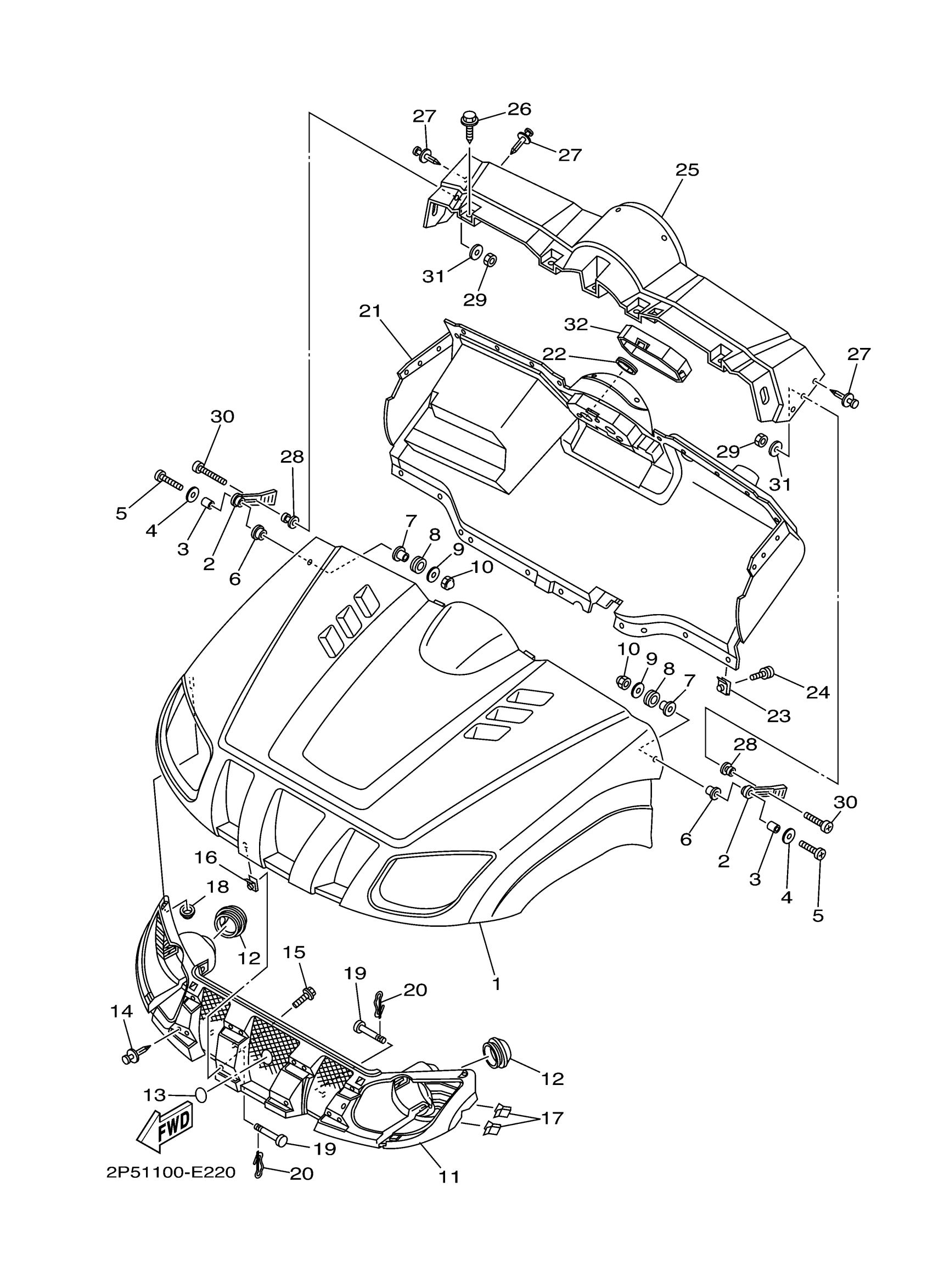 Yamaha YXR45FAVGR (RHINO 450 4WD) 2P51 2006 FRONT FENDER Diagram