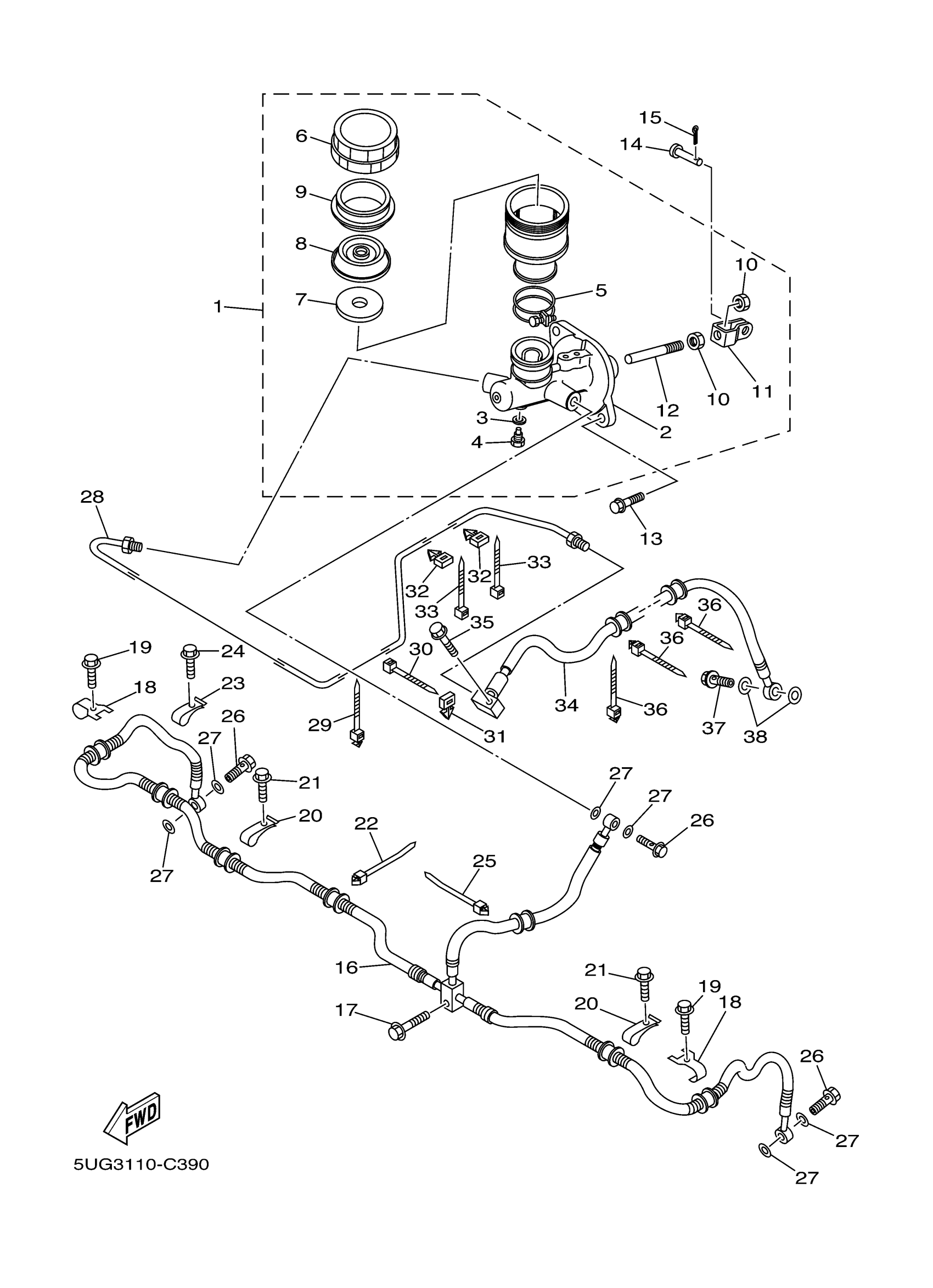 Yamaha YXR660FAHS (RHINO HARDWOODS CAMO) 5UG3 2004 REAR MASTER CYLINDER Diagram