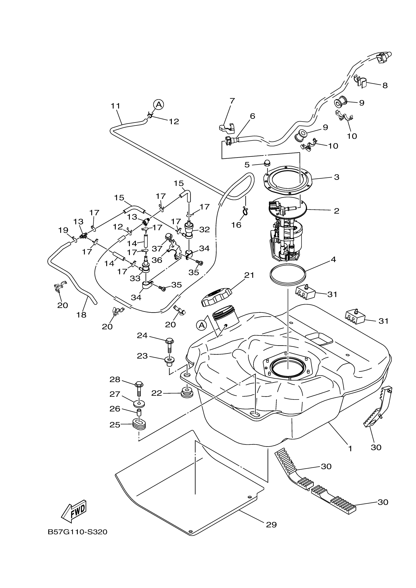 Yamaha YXZ10YESHS (YXZ1000R EPS SS SE) B57G 2017 FUEL TANK Diagram