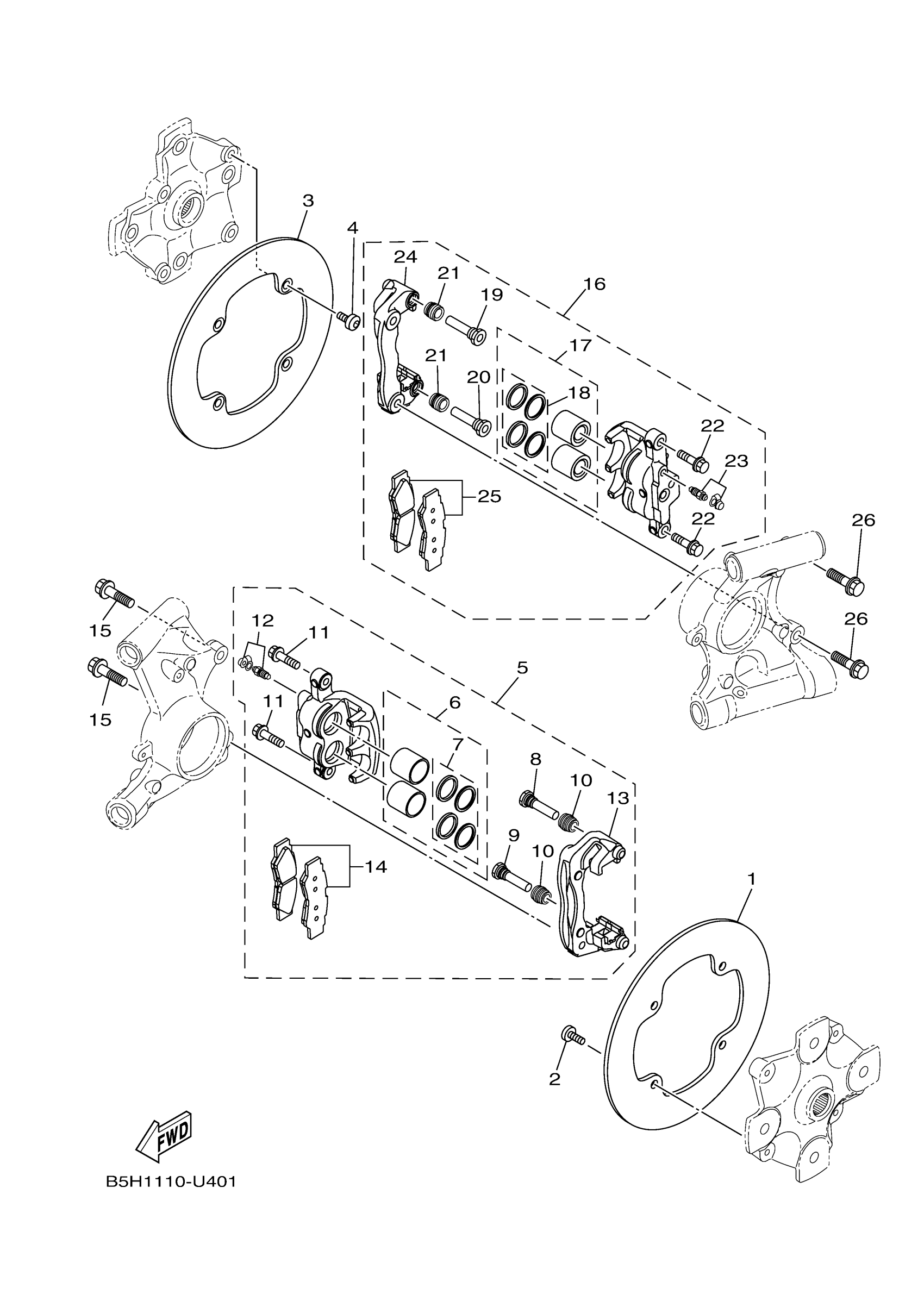 Yamaha YXZ10YEXLW (YXZ1000R EPS SS) BAS6 2020 REAR BRAKE CALIPER Diagram