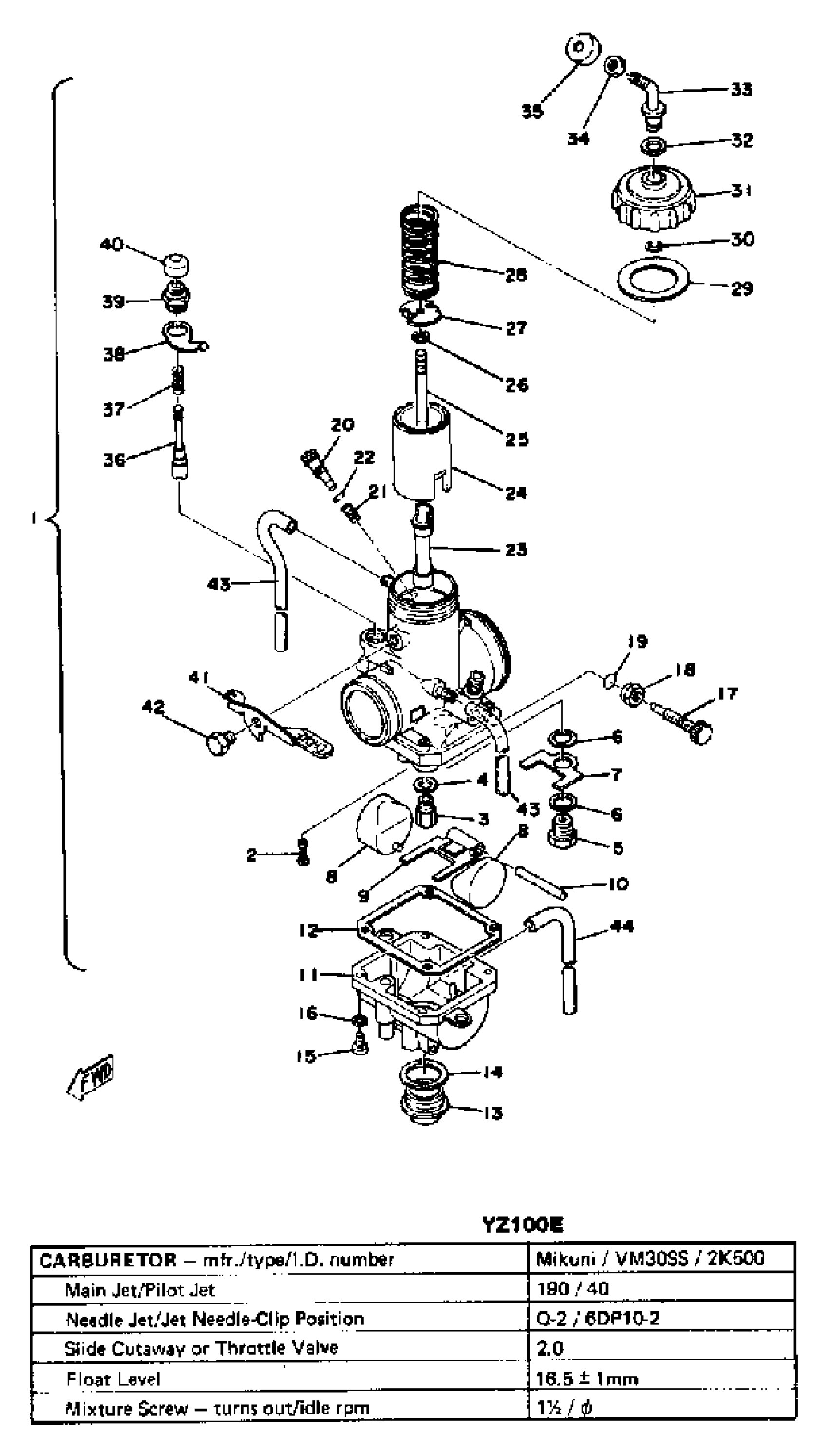 CARBURETOR YZ100 E - F