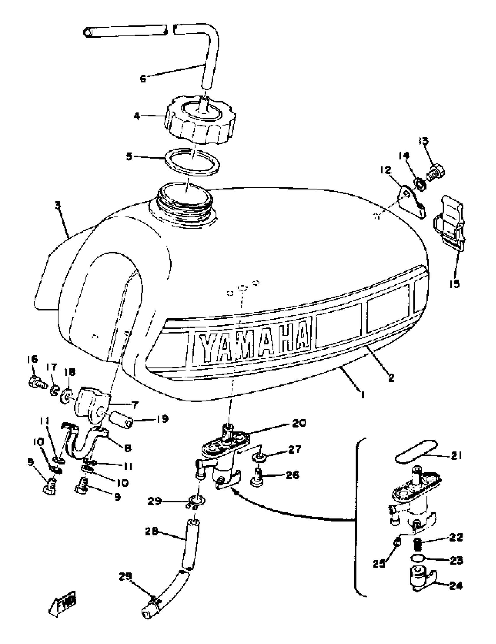 Yamaha YZ100D (YZ100D) 1977 FUEL TANK YZ100 E - F Diagram