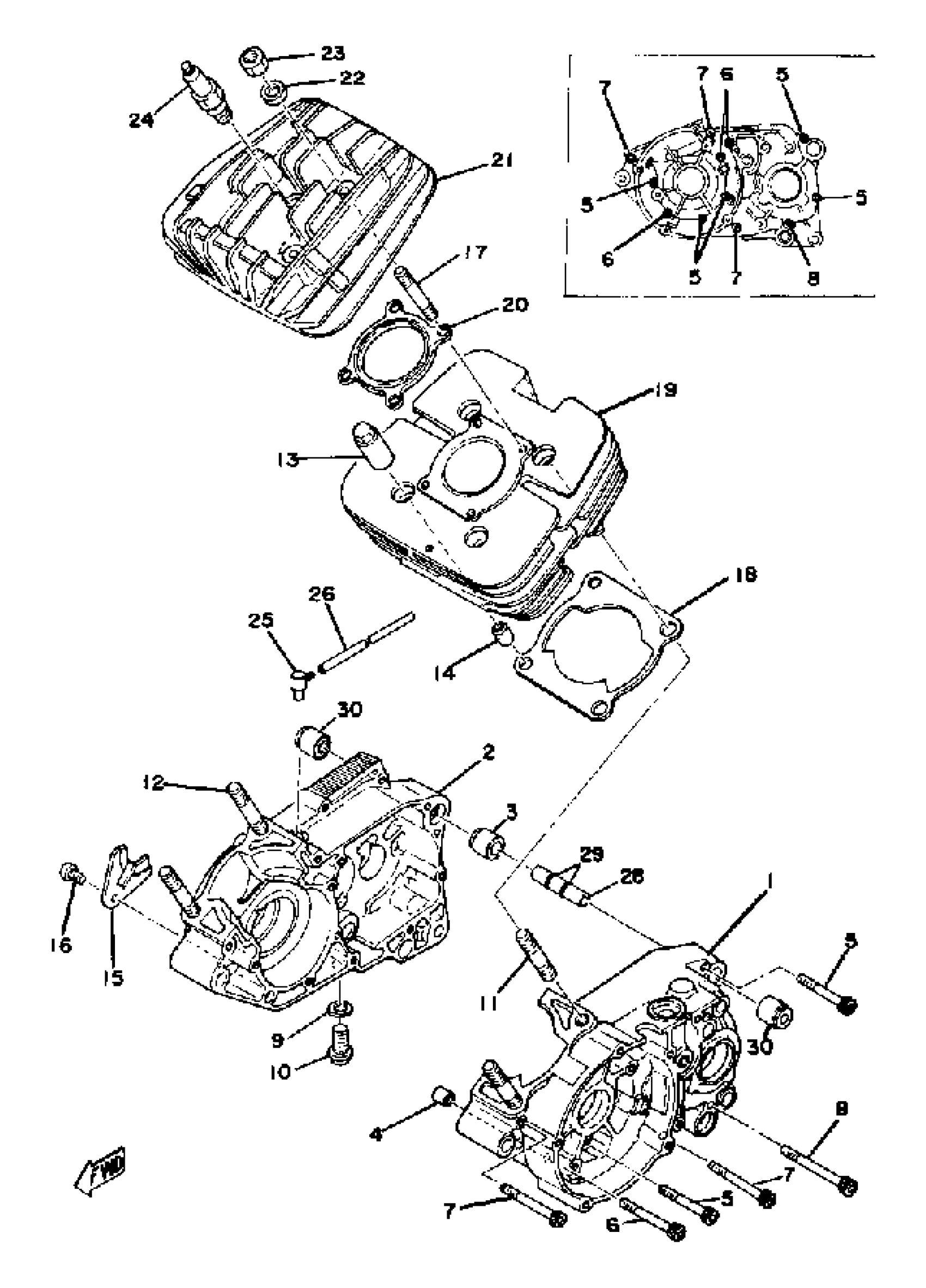 CRANKCASE - CYLINDER YZ125D
