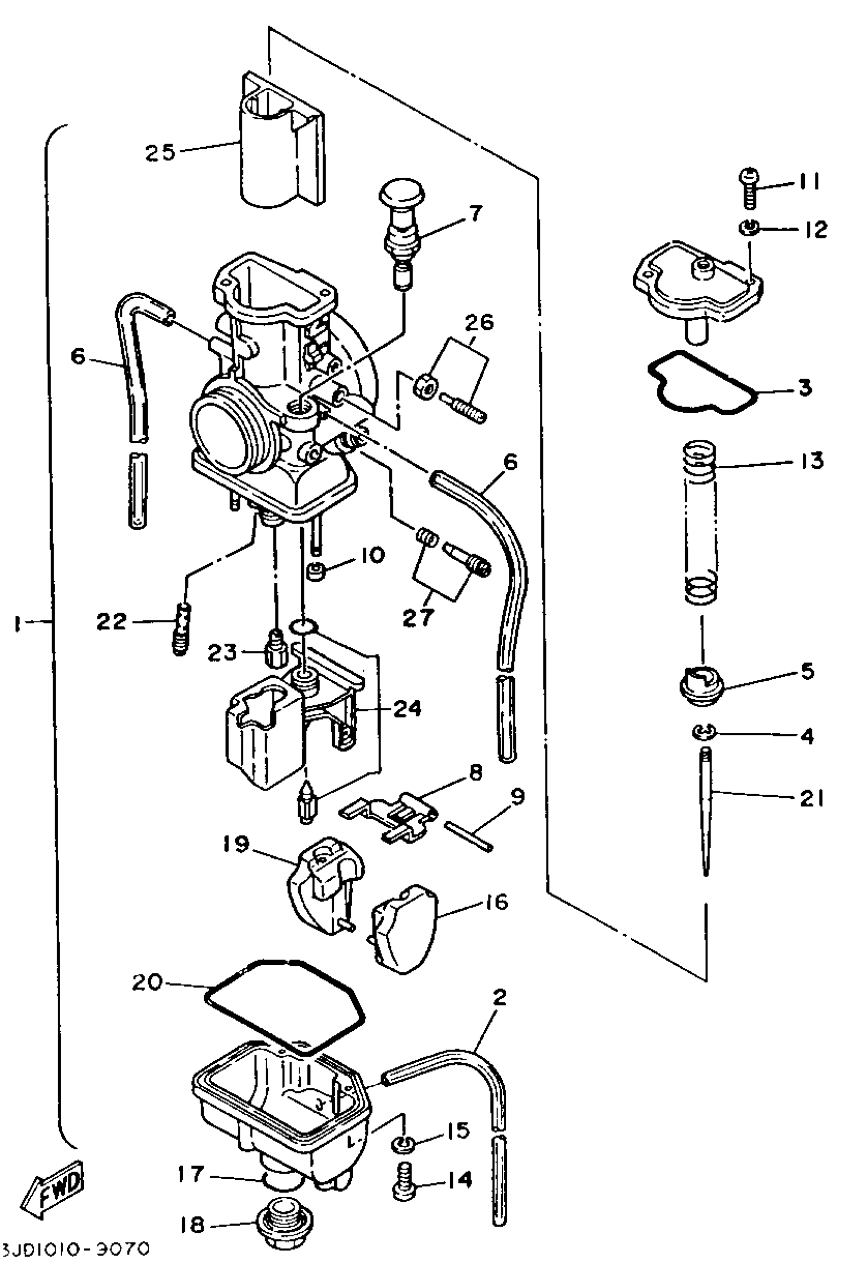 Yamaha YZ125E1 (YZ125E1) 1993 CARBURETOR Diagram
