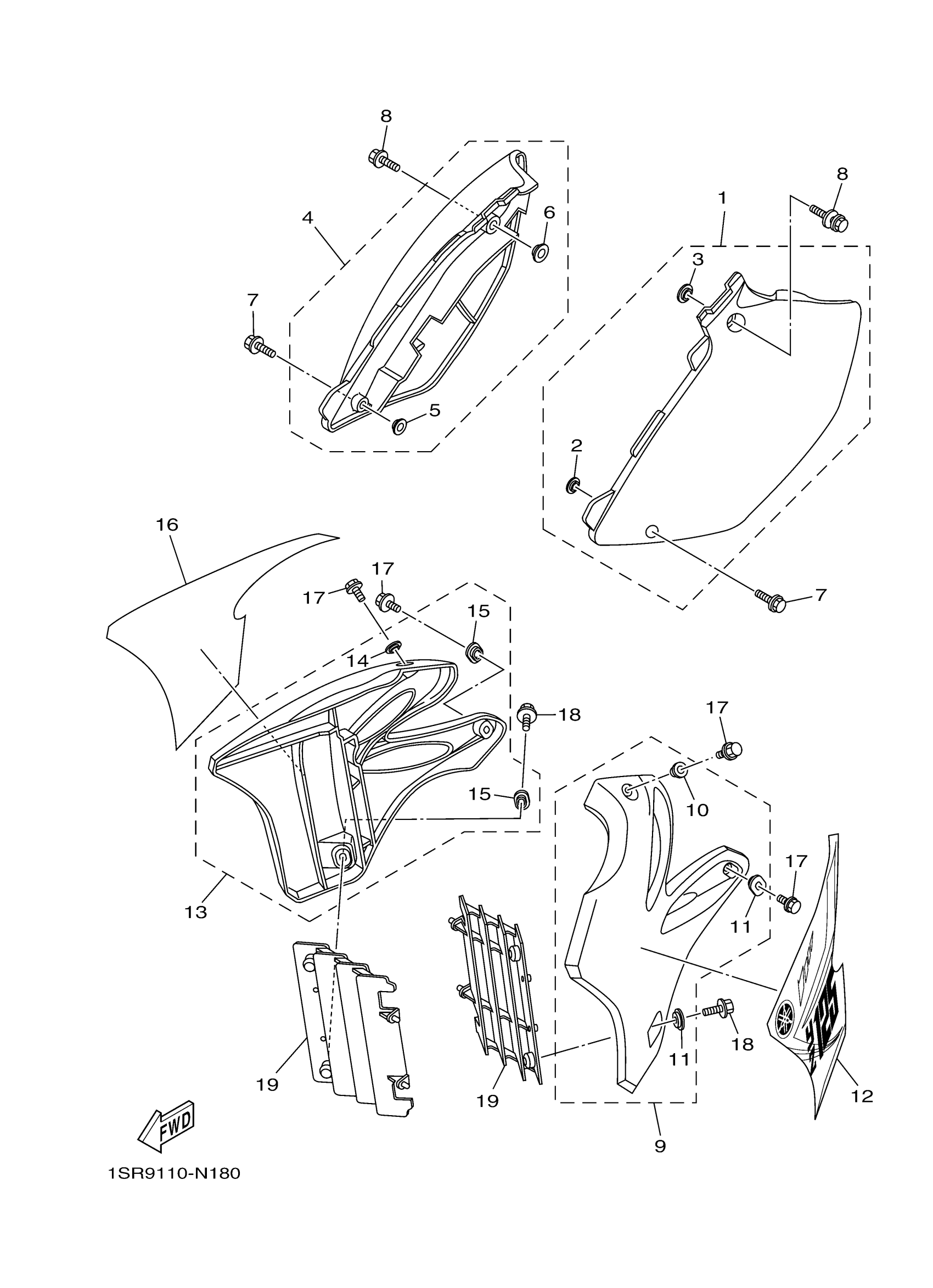 Yamaha YZ125E2 (YZ125) 1SR9 2014 SIDE COVER Diagram