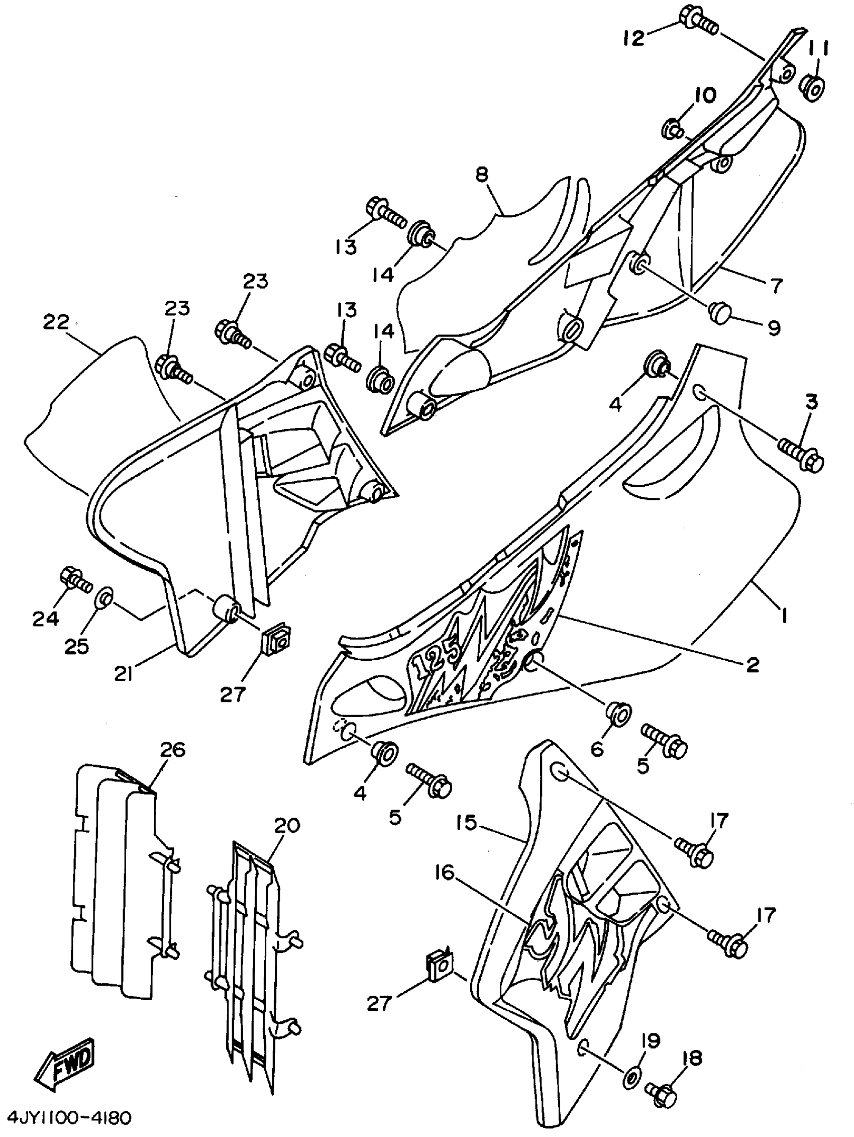 Yamaha YZ125F1 (YZ125F1) 1994 SIDE COVER Diagram