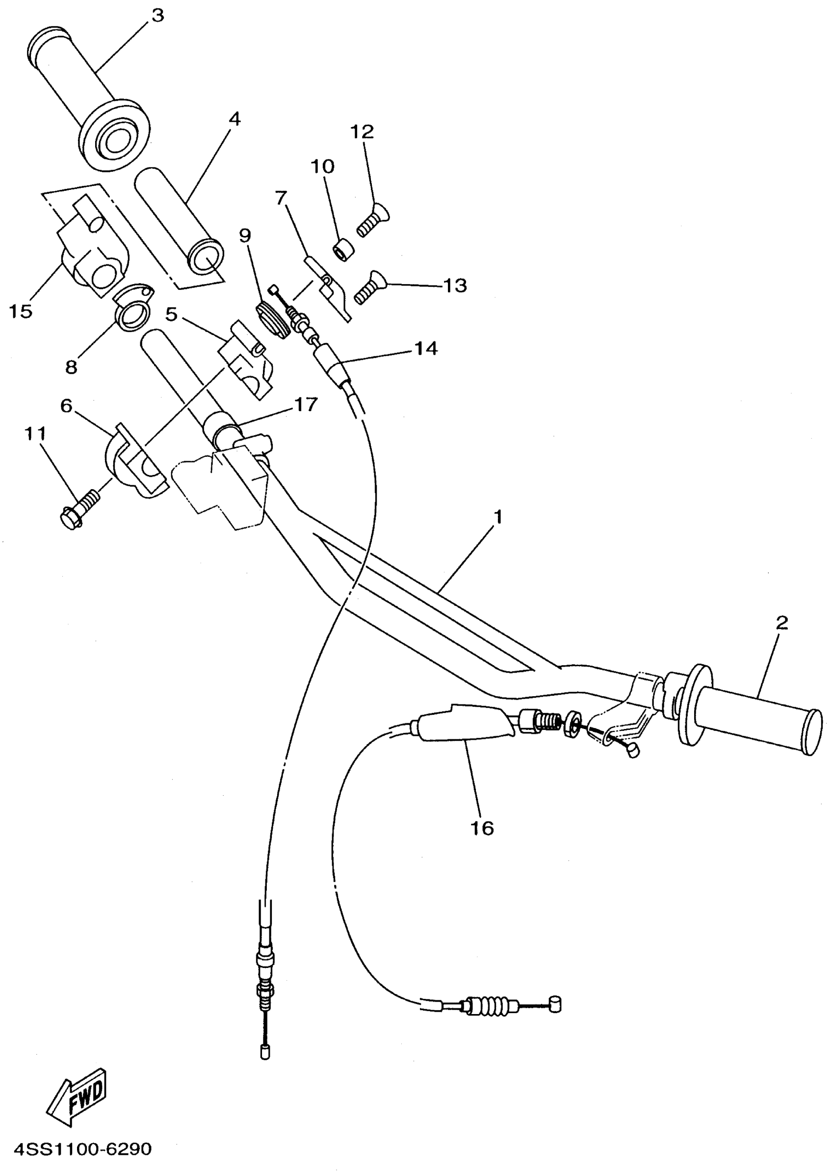 Yamaha YZ125H1 (YZ125) 4SS2 1996 STEERING HANDLE CABLE Diagram