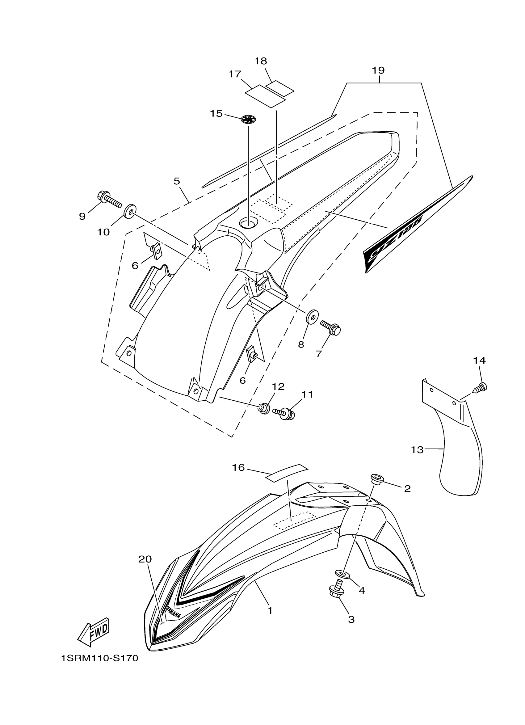 Yamaha YZ125H2 (YZ125) 1SRM 2017 FENDER Diagram