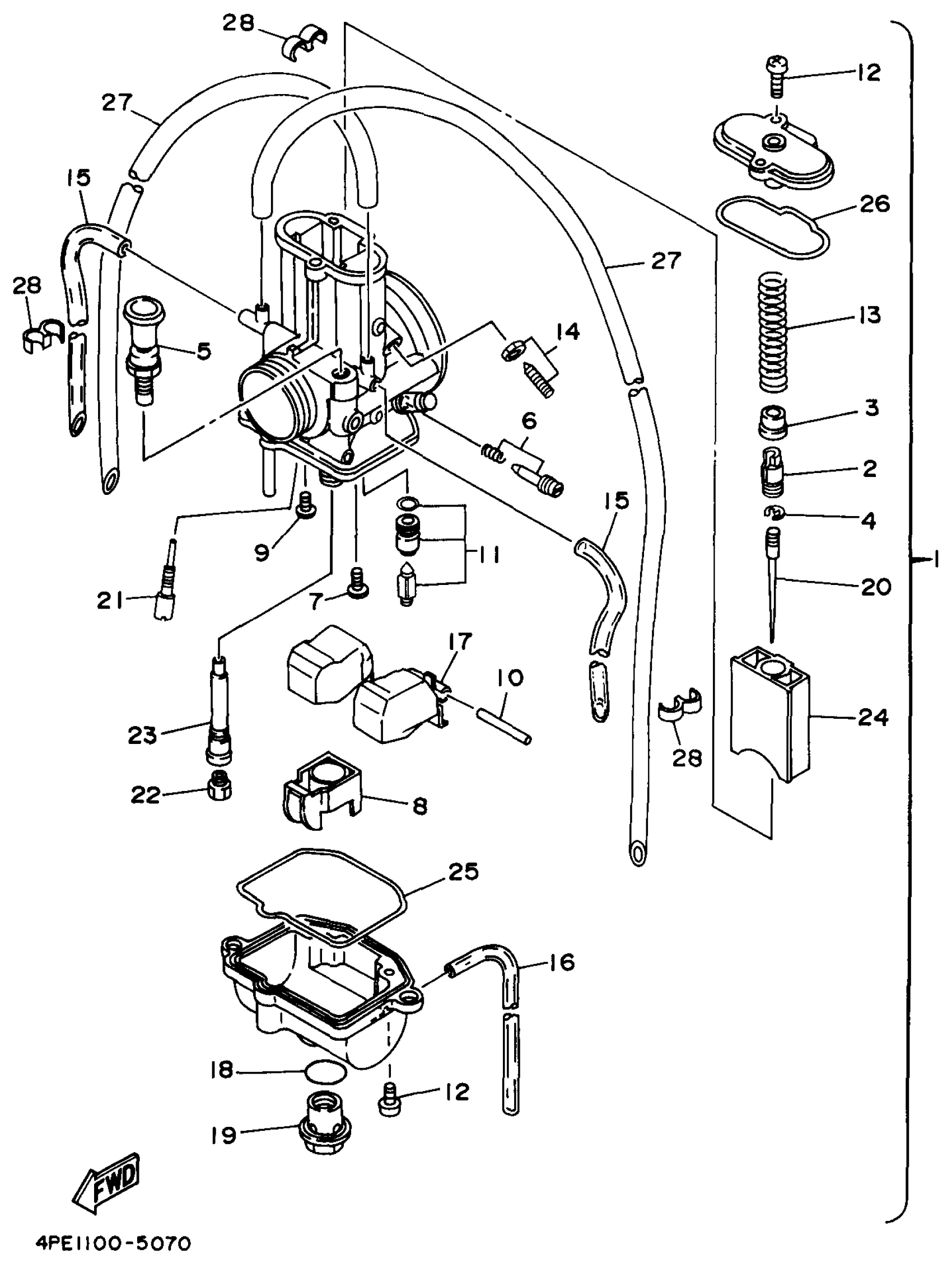 Yamaha YZ125J1 (YZ125) 4XM2 1997 CARBURETOR Diagram