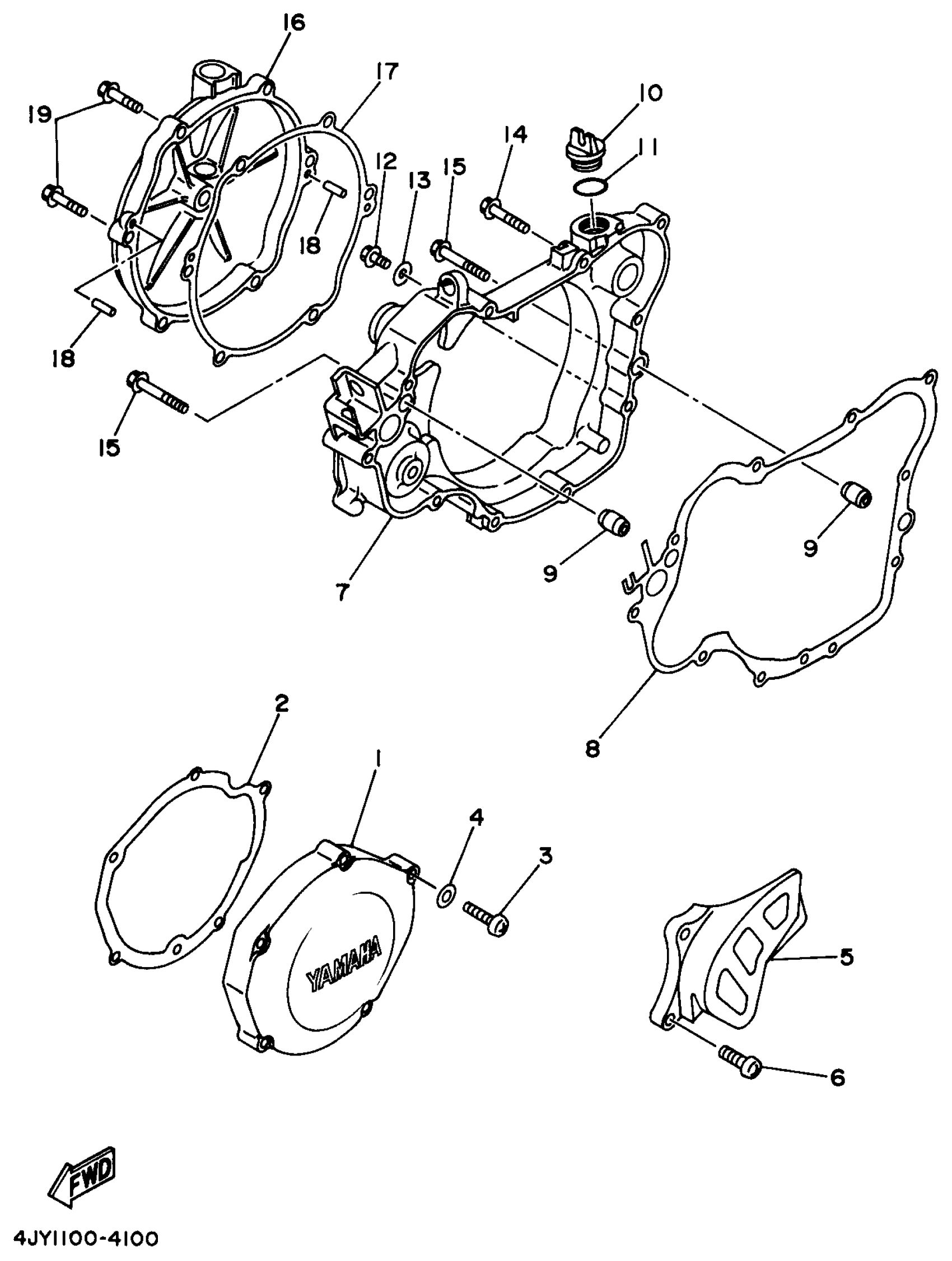 Yamaha YZ125J1 (YZ125) 4XM2 1997 CRANKCASE COVER1 Diagram
