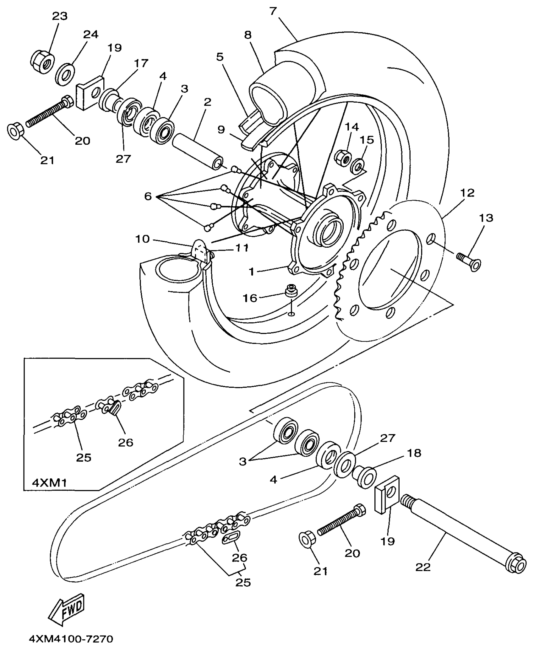 Yamaha YZ125J1 (YZ125) 4XM2 1997 REAR WHEEL Diagram
