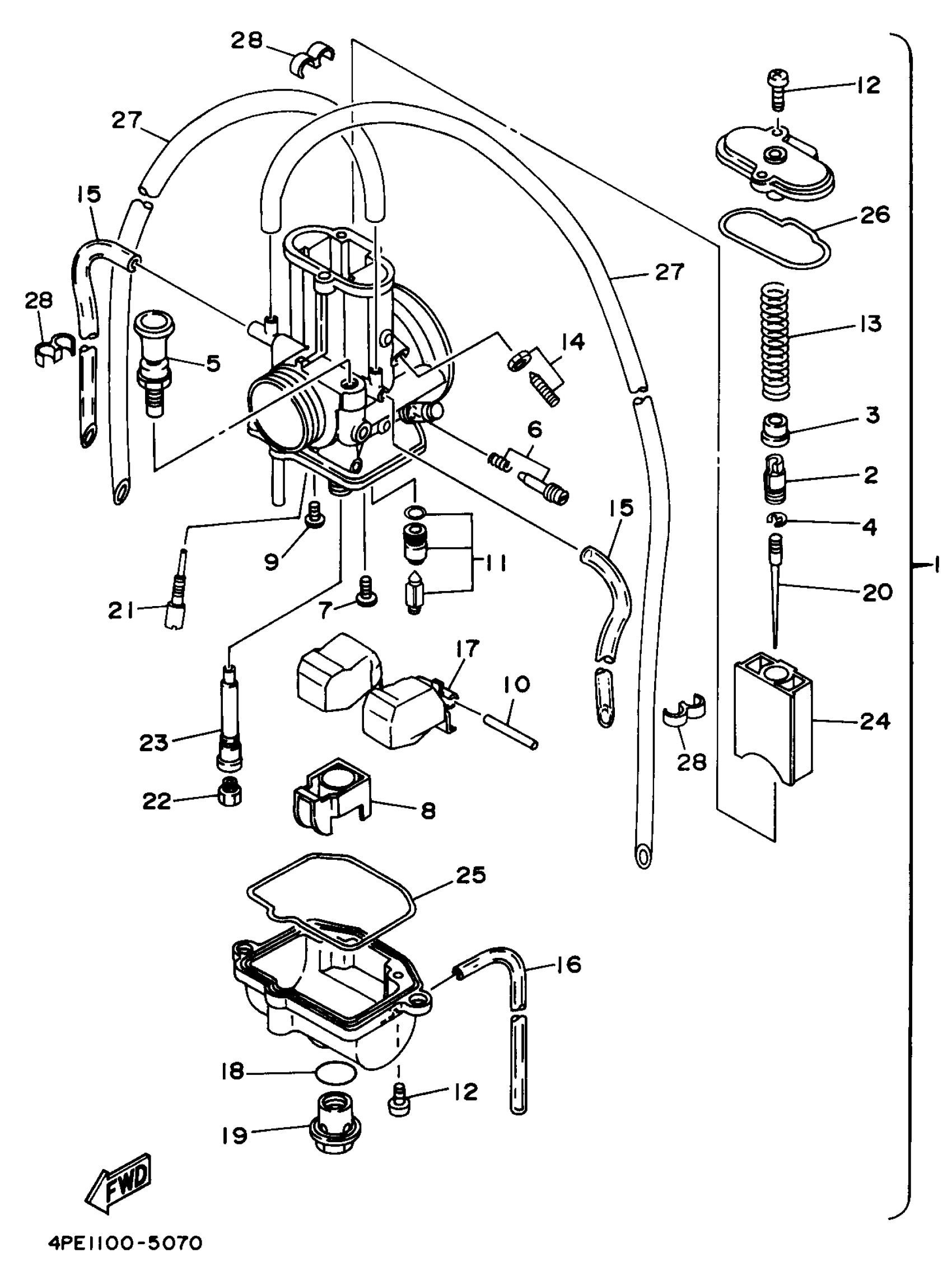 Yamaha YZ125K1 (YZ125) 5DH1 1998 CARBURETOR Diagram