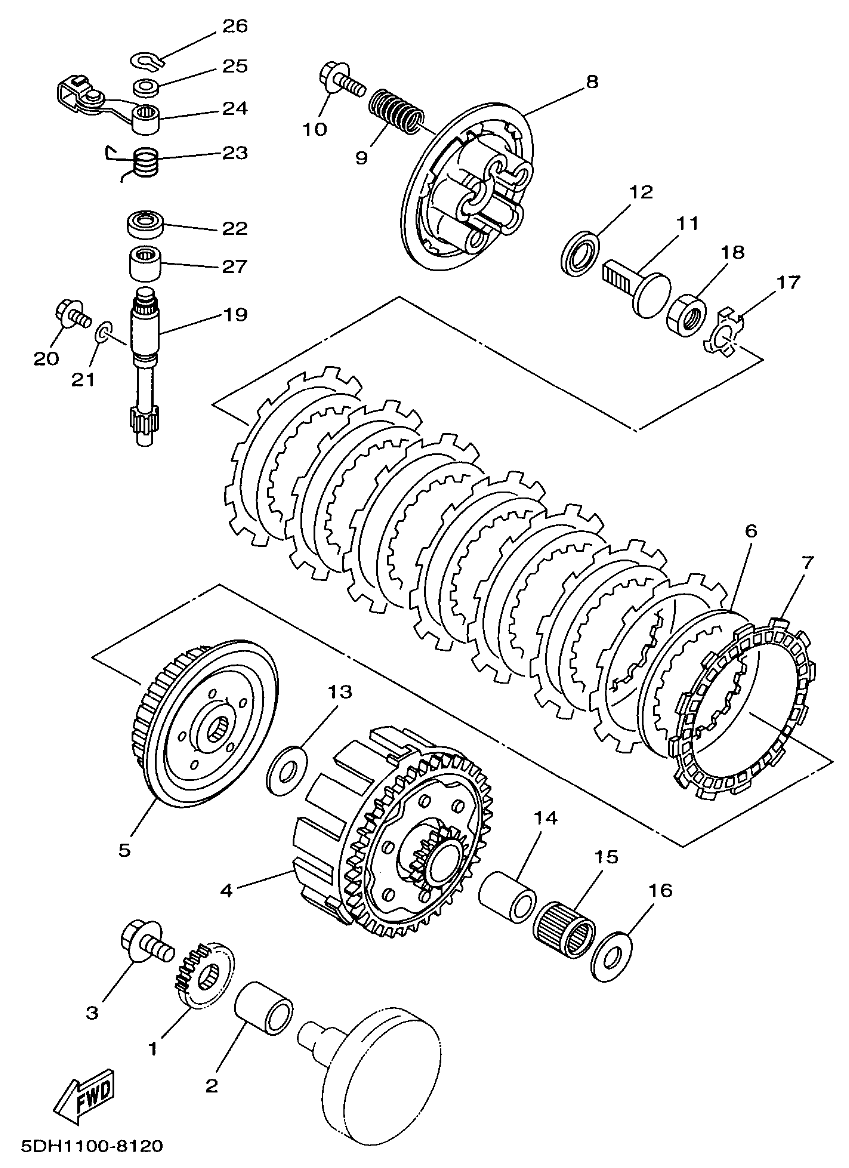 Yamaha YZ125K1 (YZ125) 5DH1 1998 CLUTCH Diagram