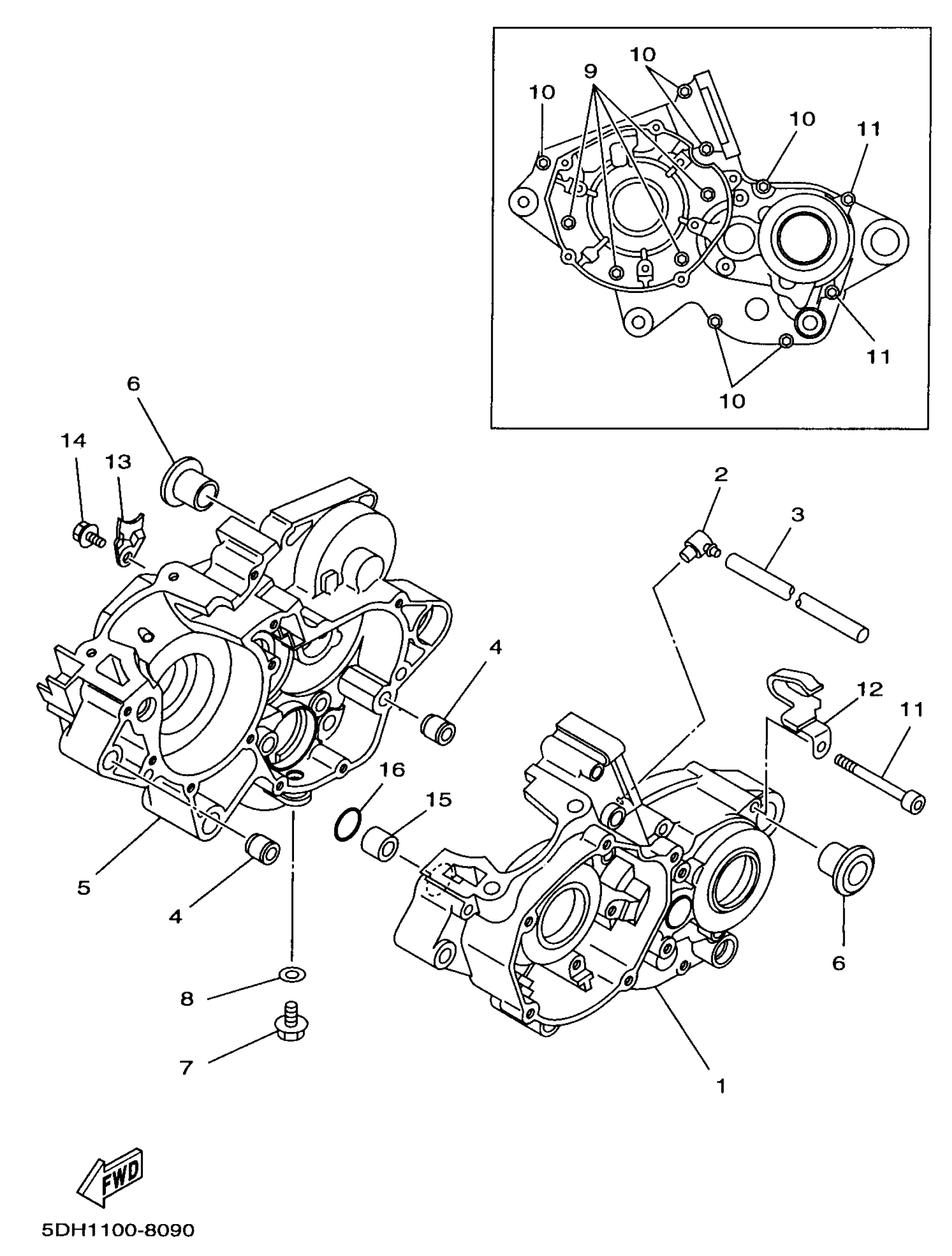 Yamaha YZ125K1 (YZ125) 5DH1 1998 CRANKCASE Diagram