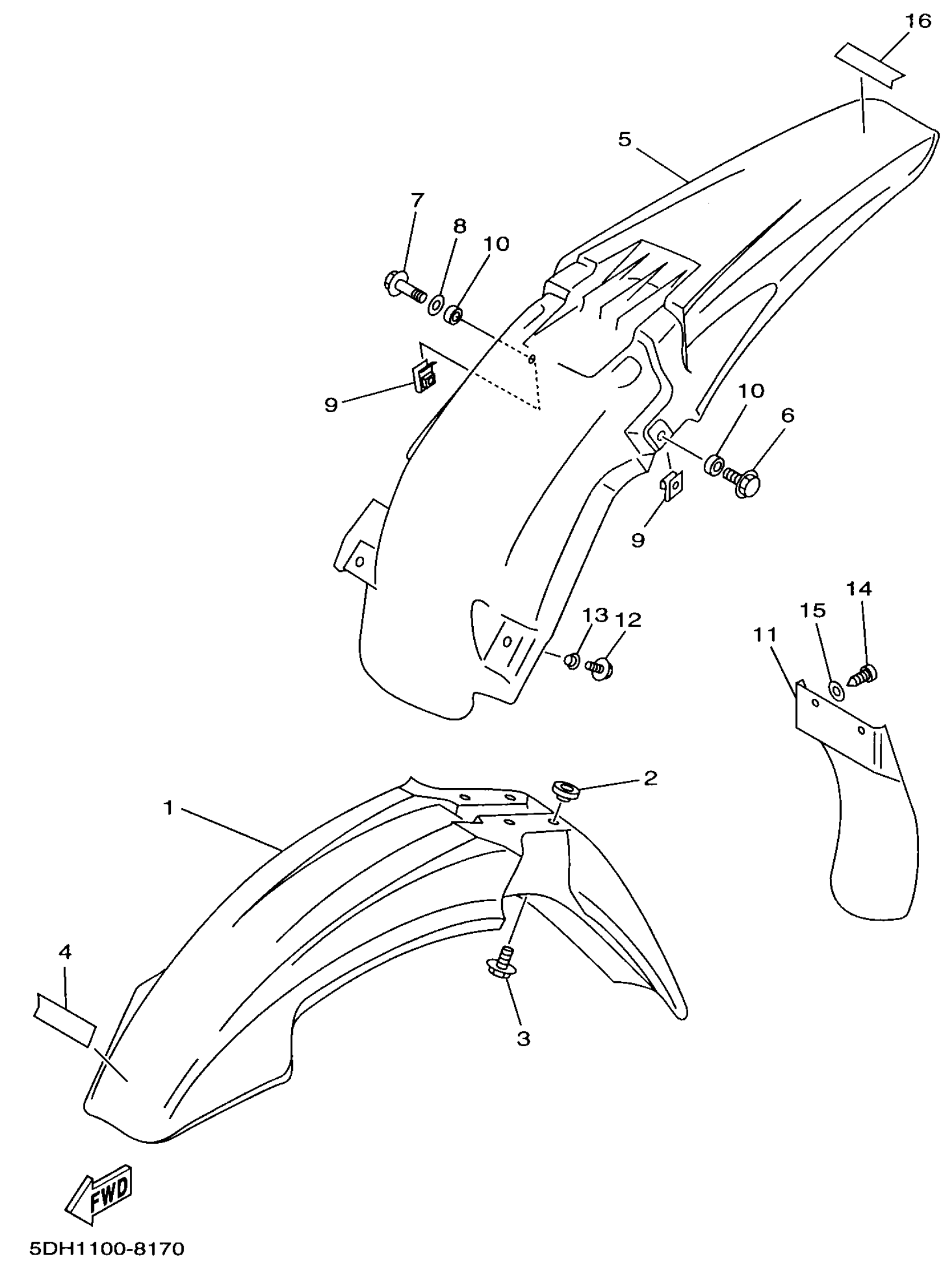 Yamaha YZ125K1 (YZ125) 5DH1 1998 FENDER Diagram