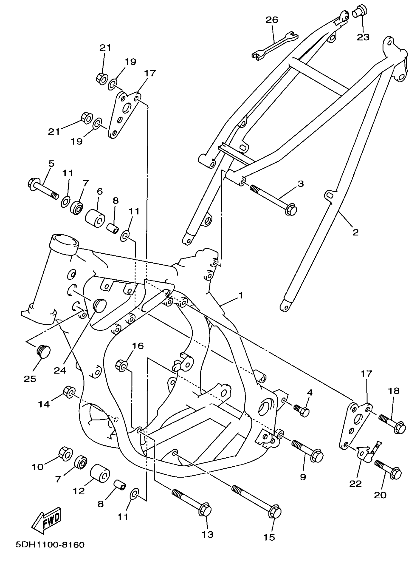 Yamaha YZ125K1 (YZ125) 5DH1 1998 FRAME Diagram
