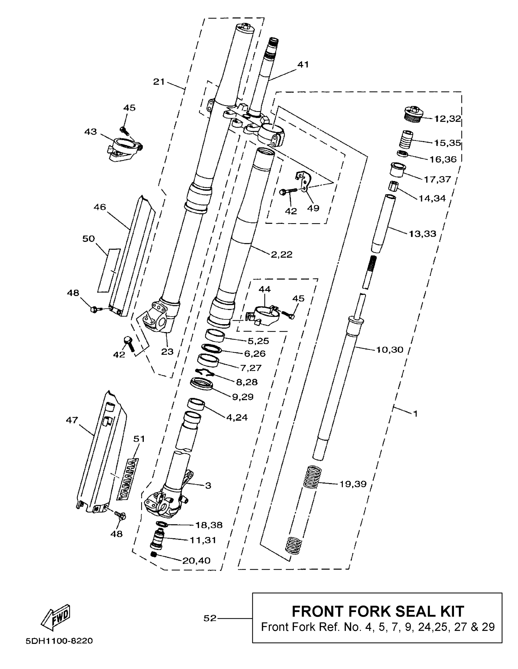 Yamaha YZ125K1 (YZ125) 5DH1 1998 FRONT FORK Diagram