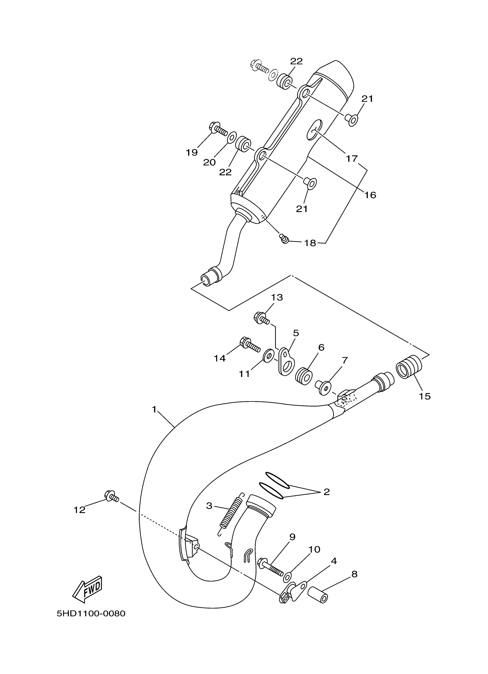Yamaha YZ125M1 (YZ125) 5HD1 2000 EXHAUST Diagram