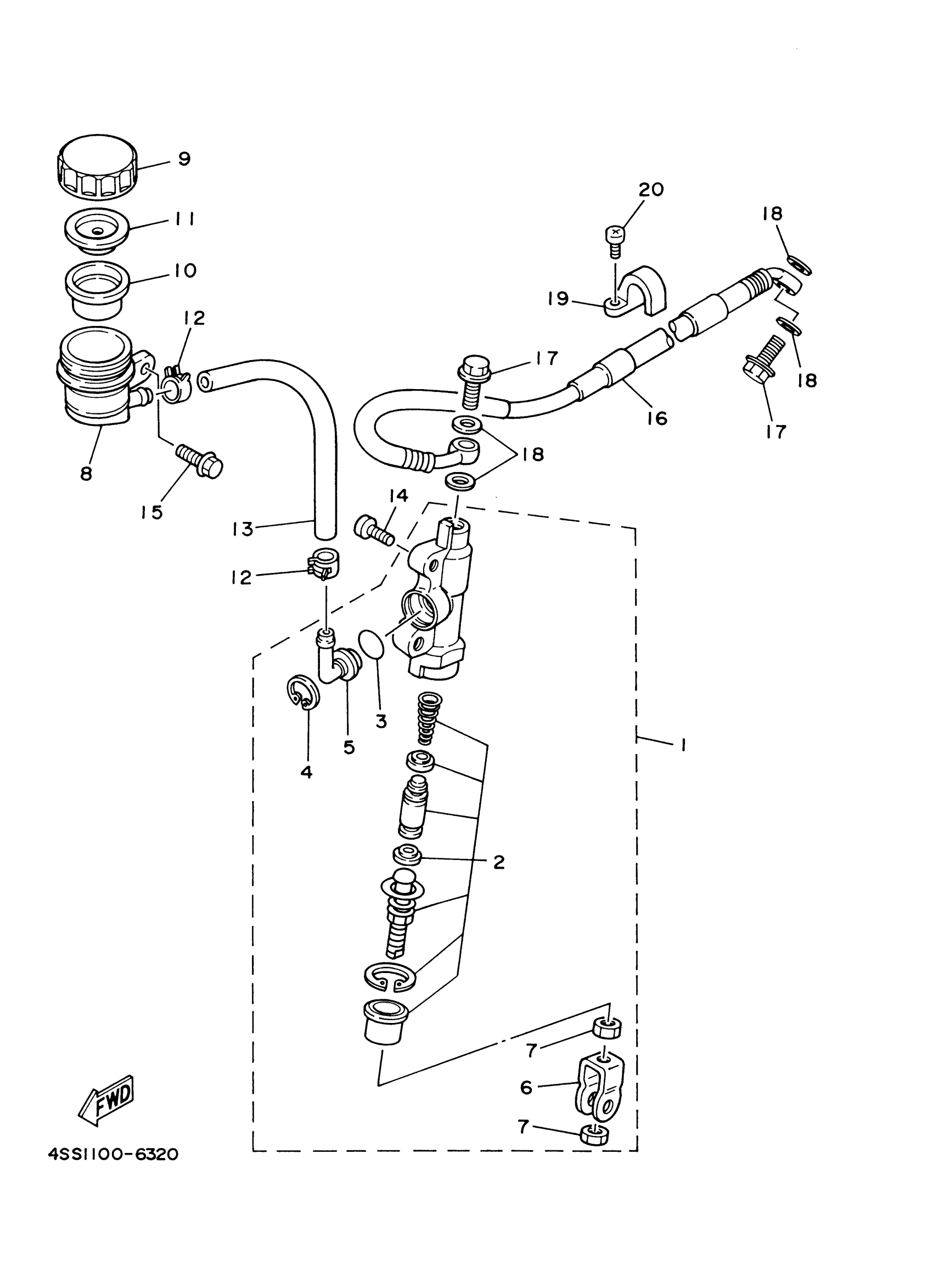 Yamaha YZ125M1 (YZ125) 5HD1 2000 REAR MASTER CYLINDER Diagram
